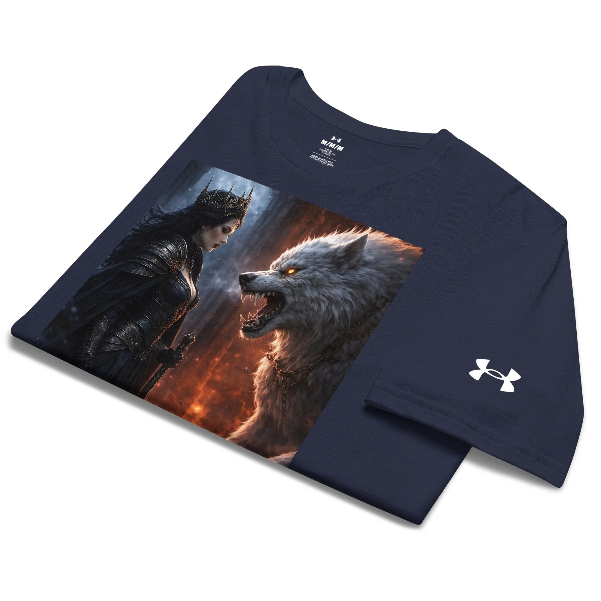 Set on an Under Armour® Athletic T-Shirt, this piece is engineered for performance — lightweight, breathable, and designed for movement — while carrying a visual presence that feels commanding rather than decorative.