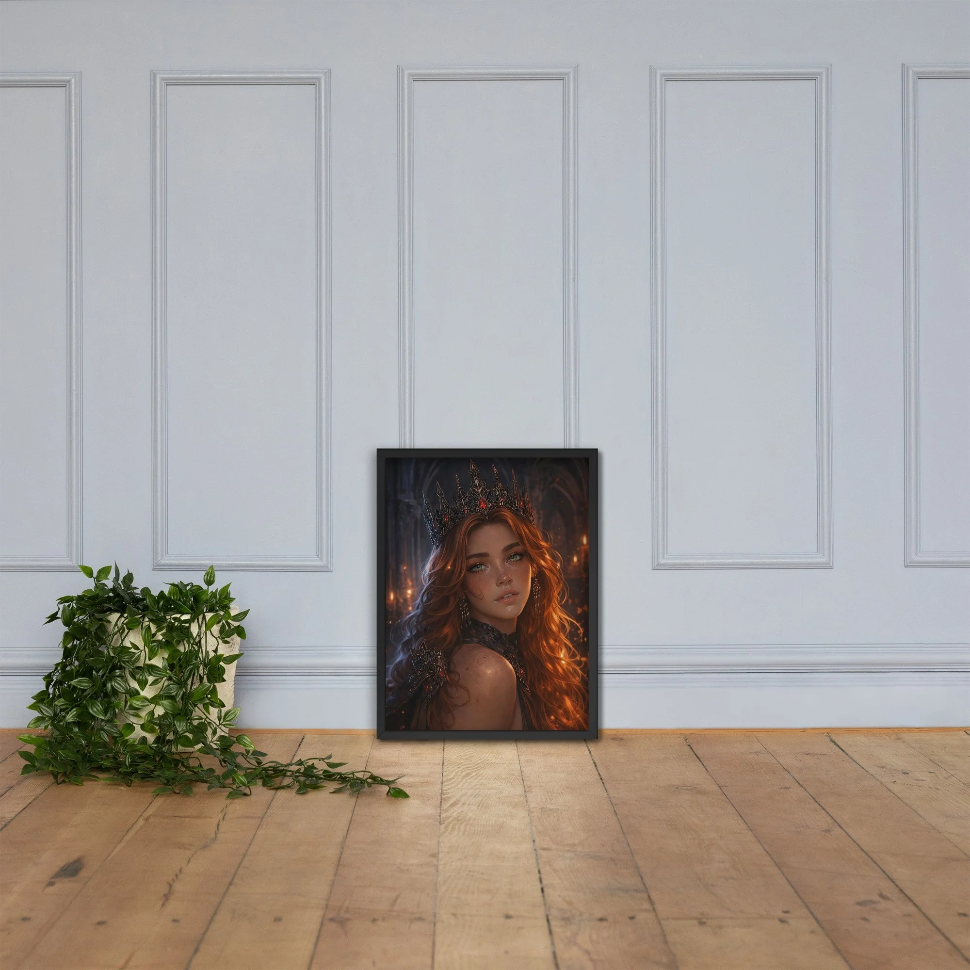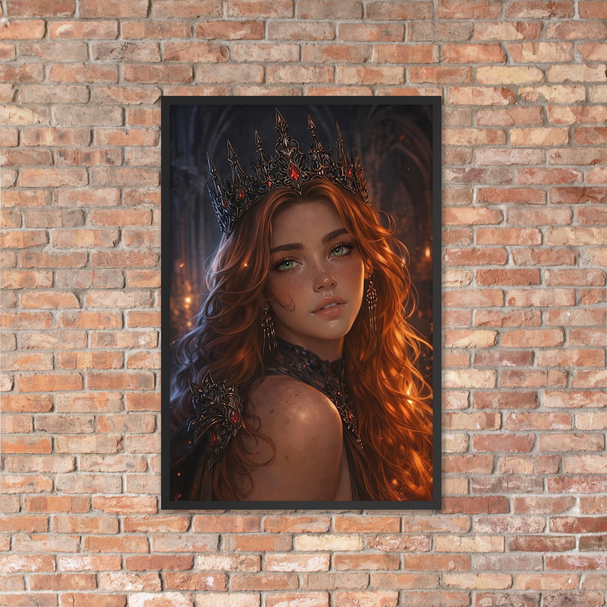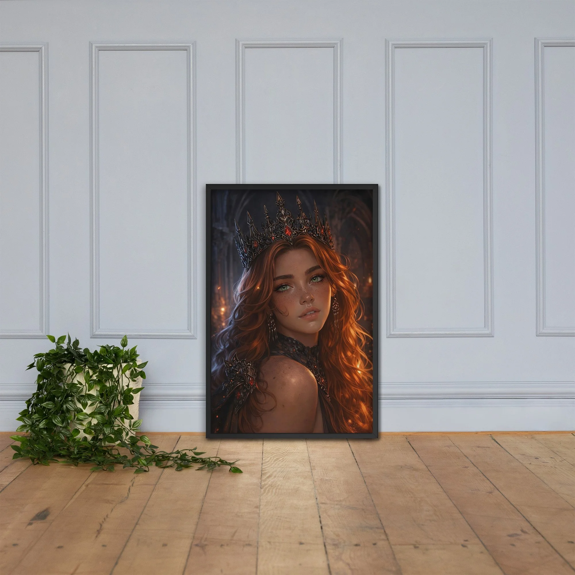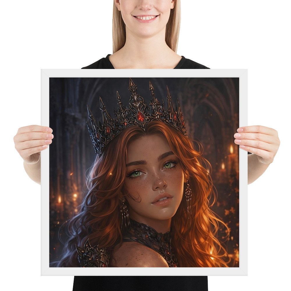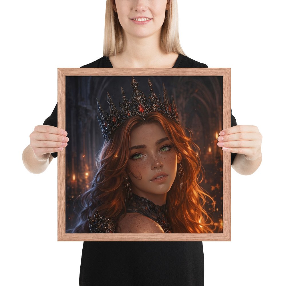 Printed on thick enhanced matte paper and presented in a choice of three refined frame finishes, this piece is built to read as a statement rather than décor. The mood is disciplined dark fantasy—elegance over excess, control over chaos. There’s a faint echo of the Empress archetype, kept intentionally subtle and expressed through presence alone.
