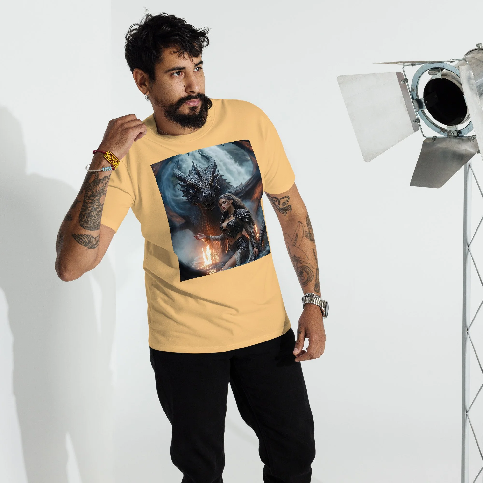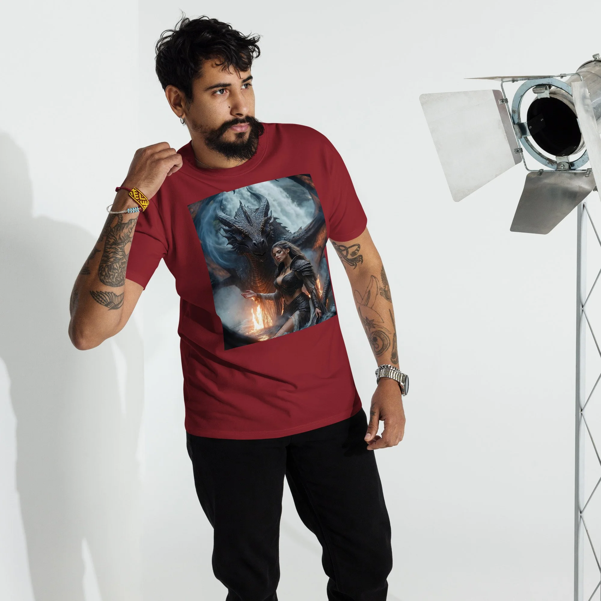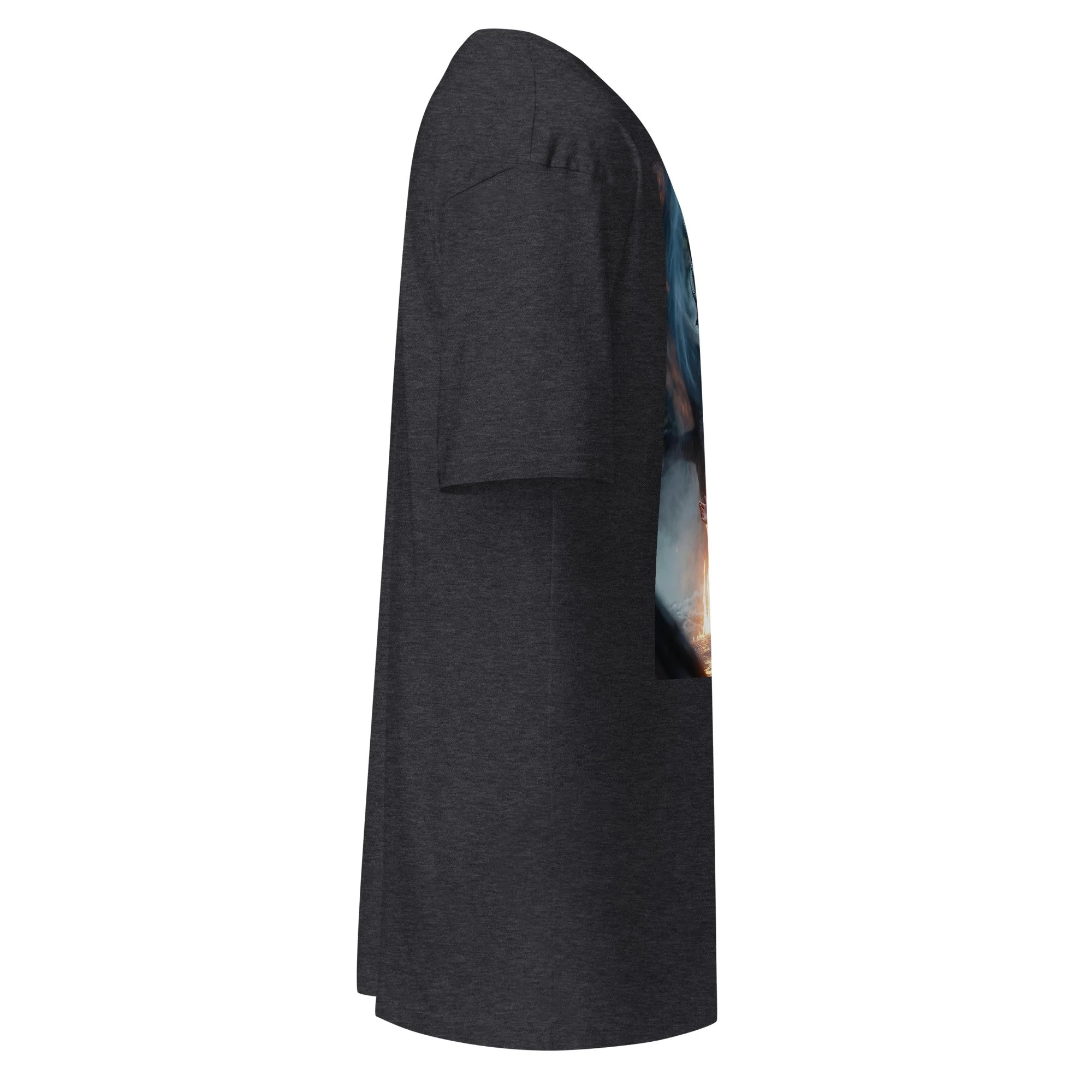 Printed on a heavyweight men’s tee built for durability and presence, this piece delivers cinematic contrast and hard-edged atmosphere—made to hit like a legend every time you wear it.