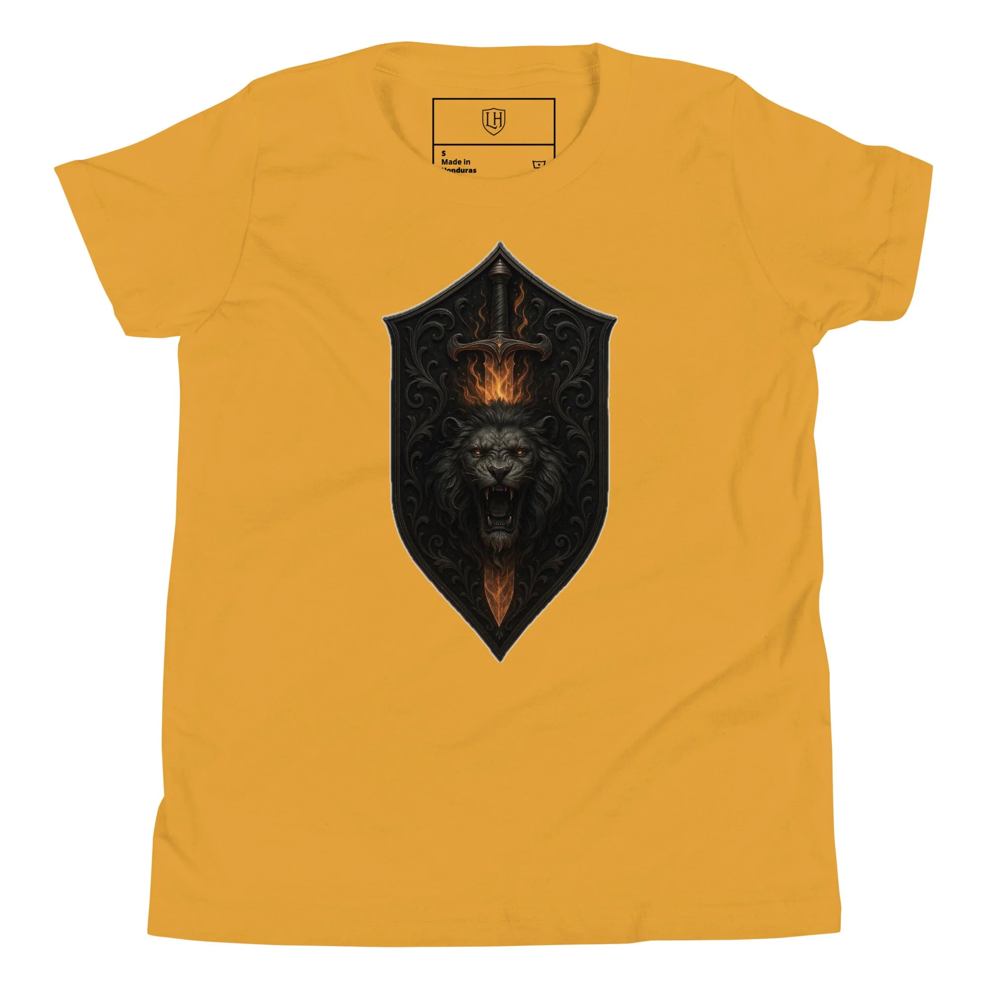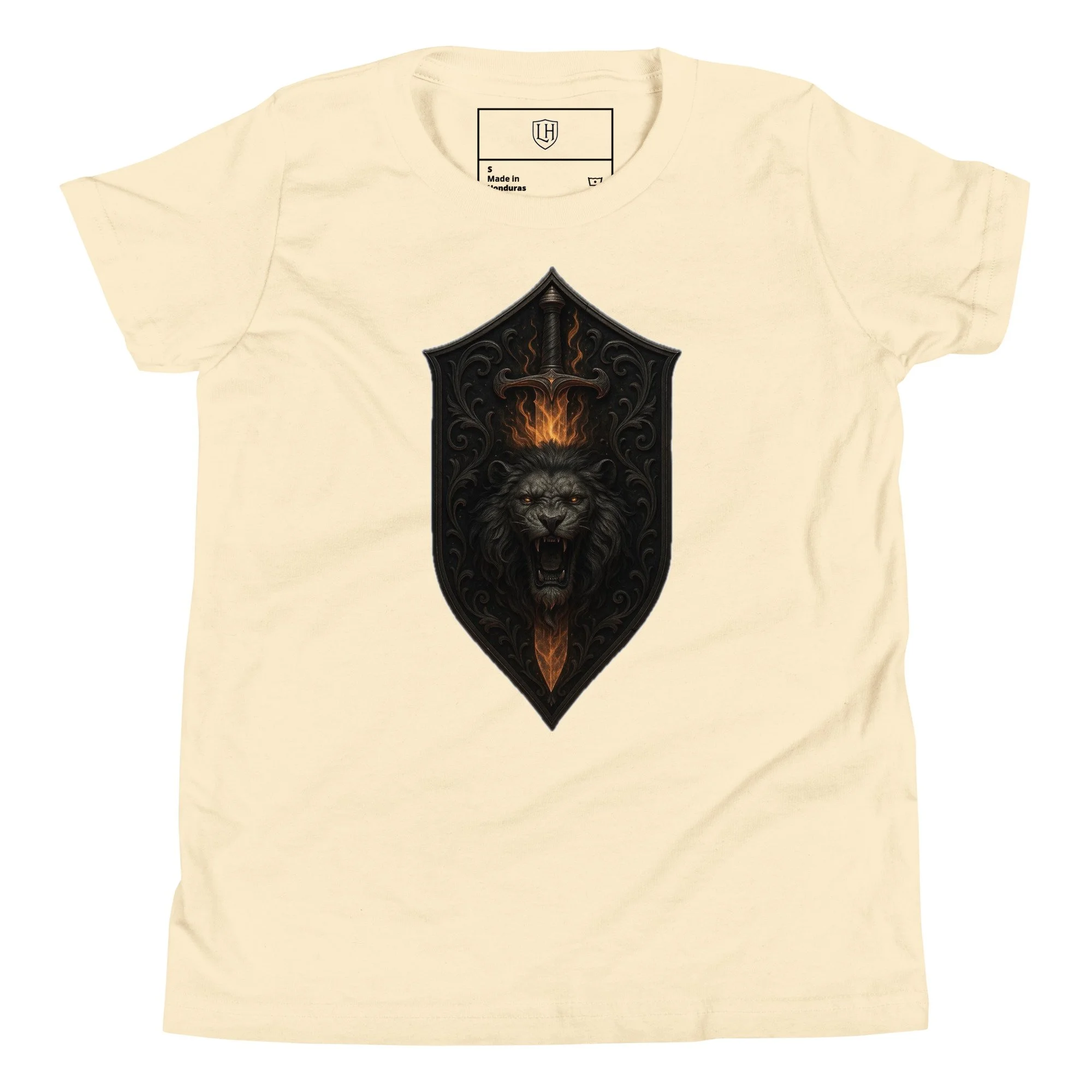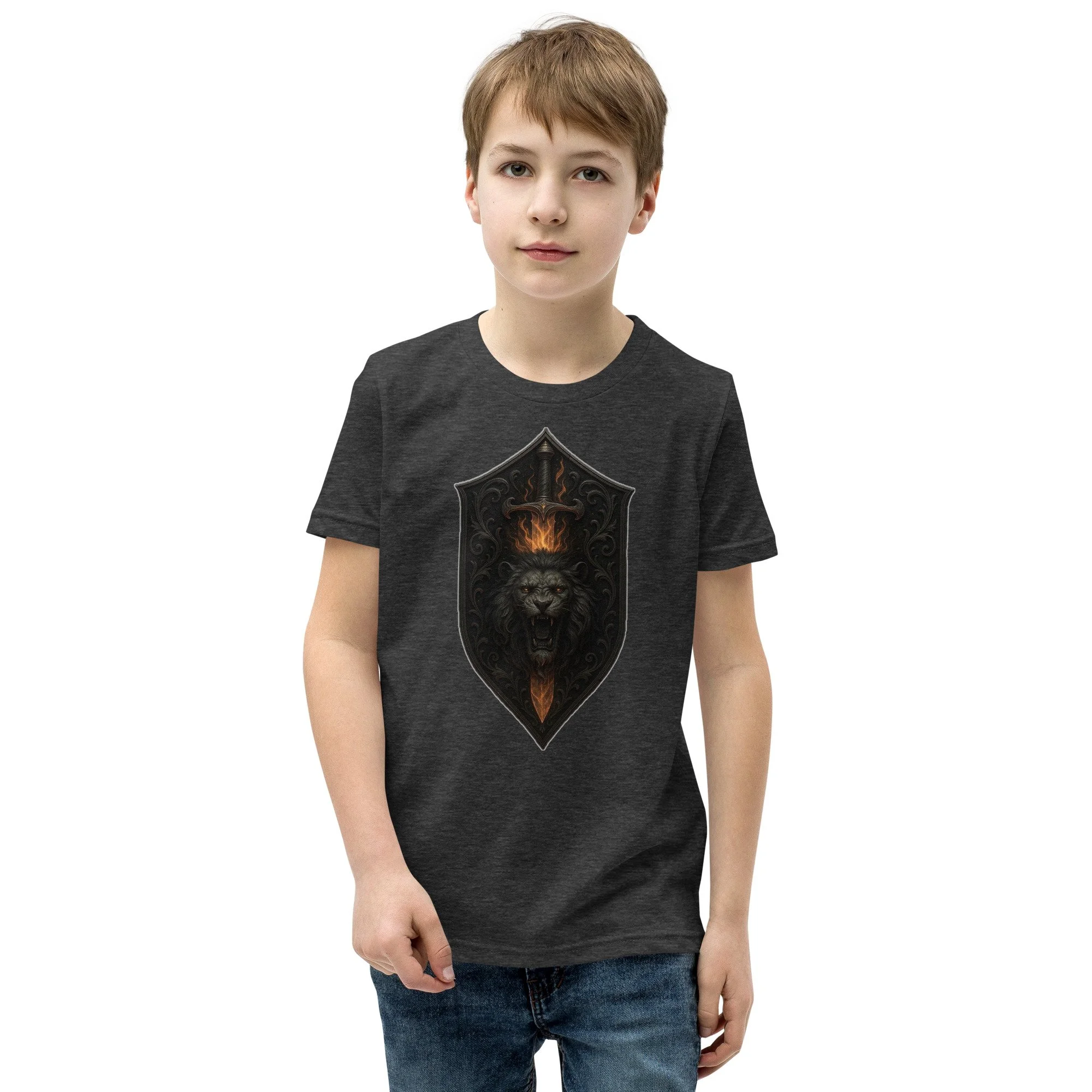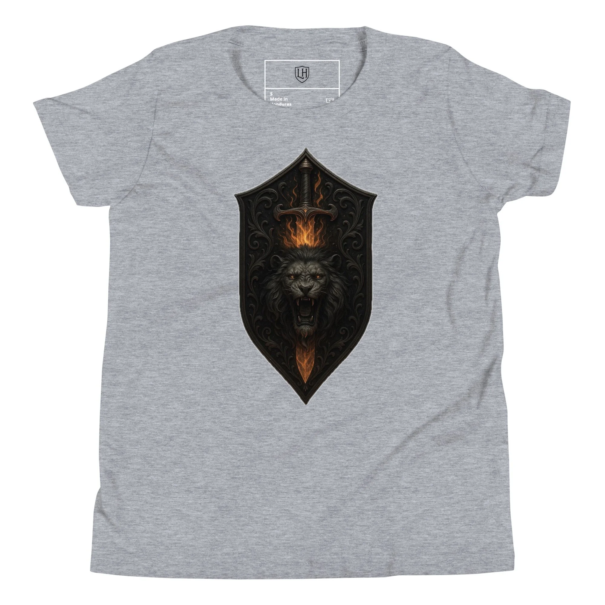 For young hearts with fearless spirit. The Lionheart Youth Tee features a bold heraldic lion crest in a dark fantasy style—perfect for kids who lead with courage, confidence, and imagination. Soft, lightweight, and built for everyday adventure.