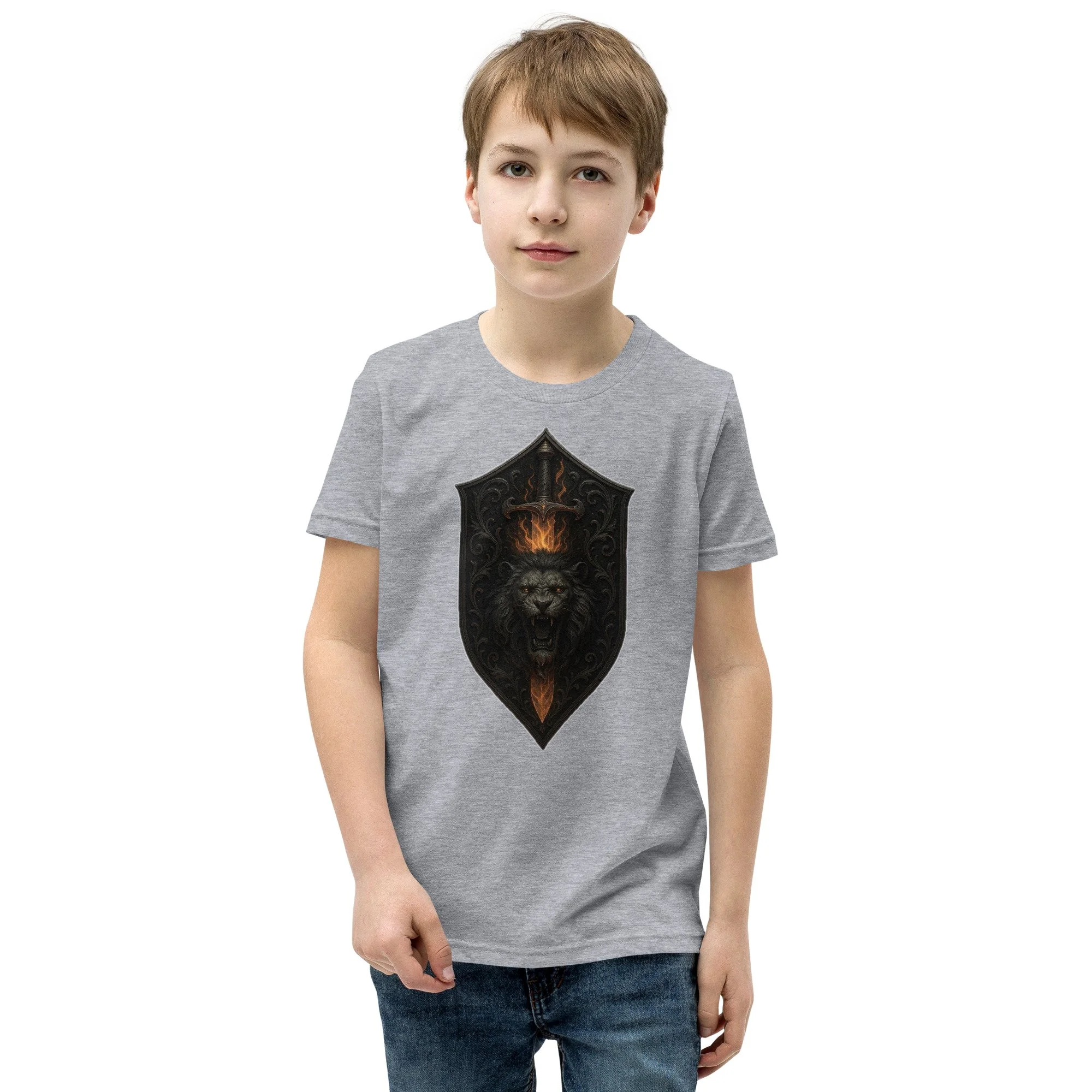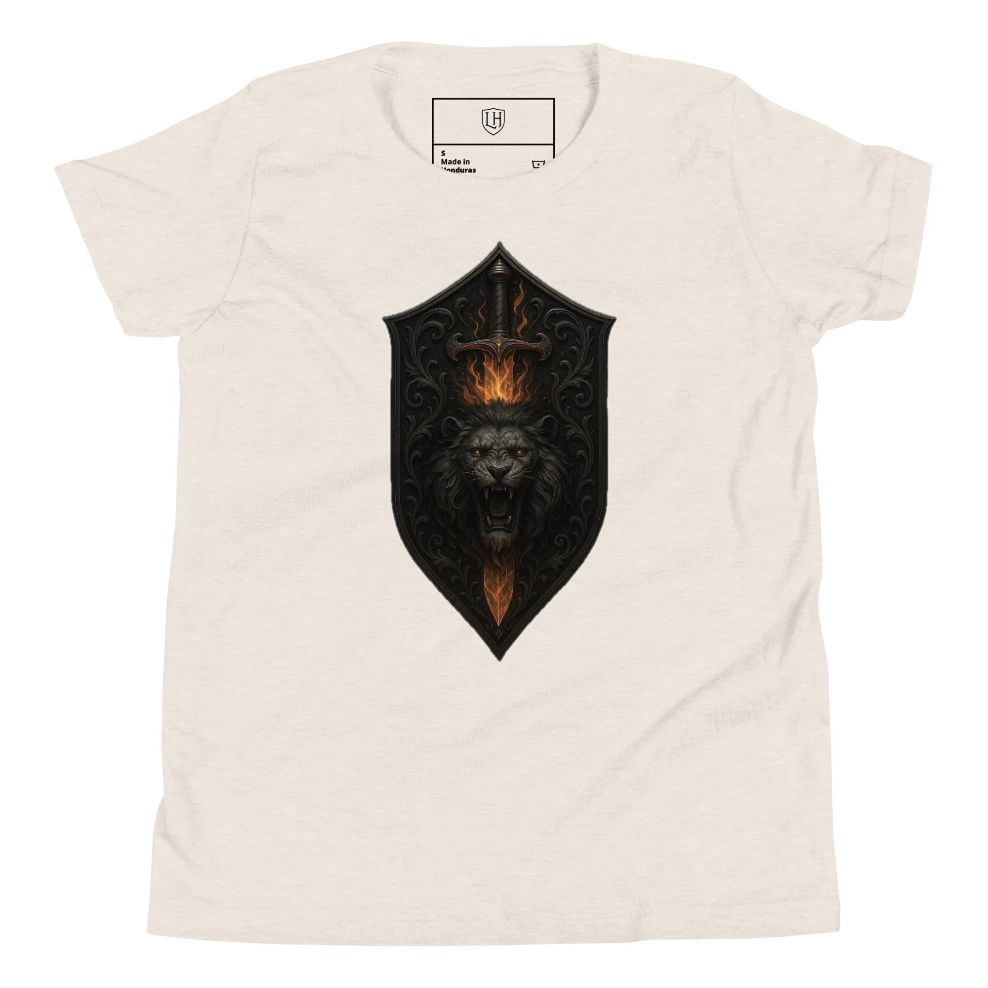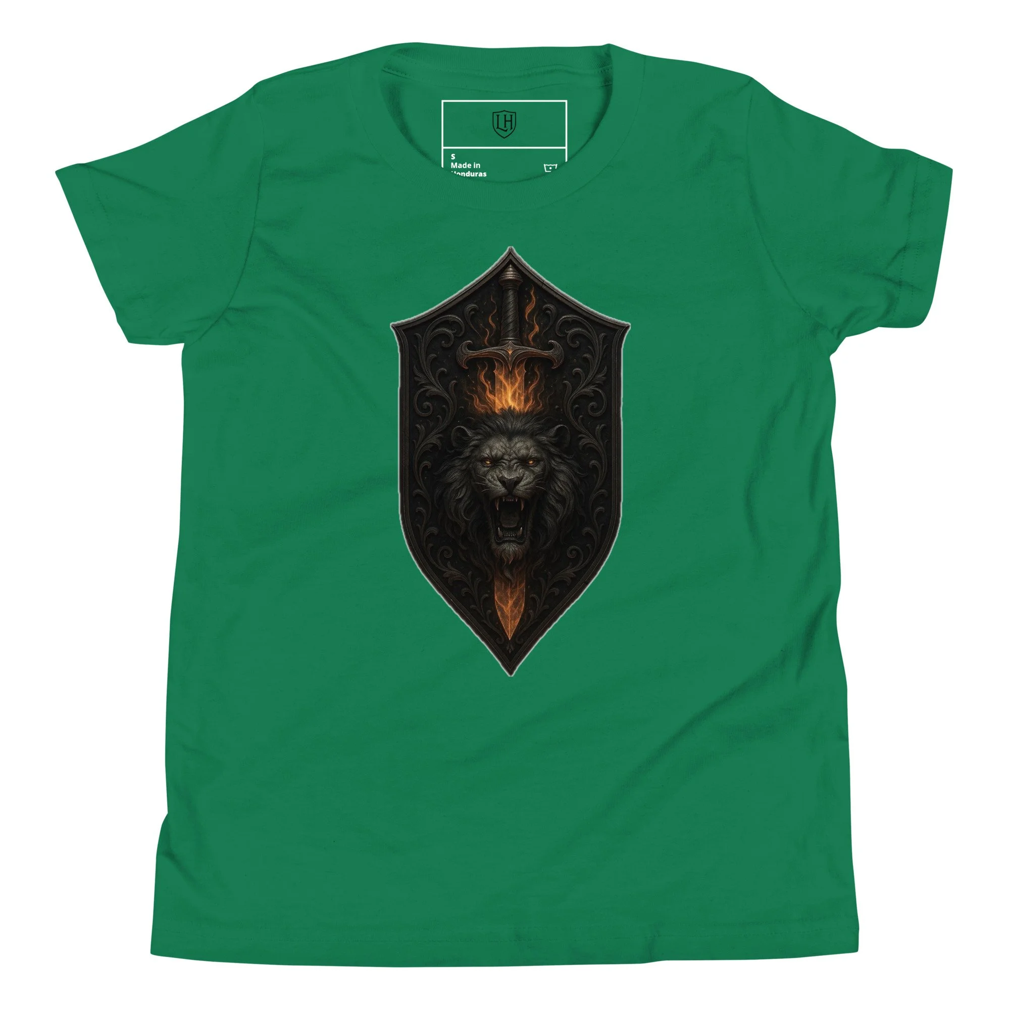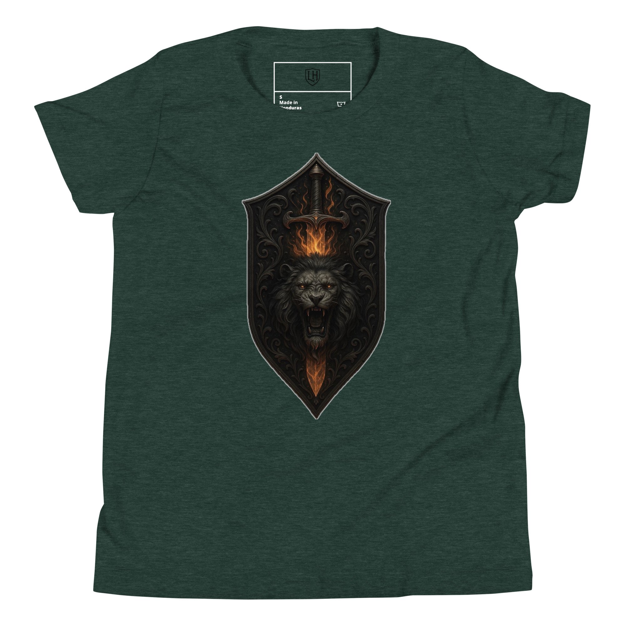 For young hearts with fearless spirit. The Lionheart Youth Tee features a bold heraldic lion crest in a dark fantasy style—perfect for kids who lead with courage, confidence, and imagination. Soft, lightweight, and built for everyday adventure.