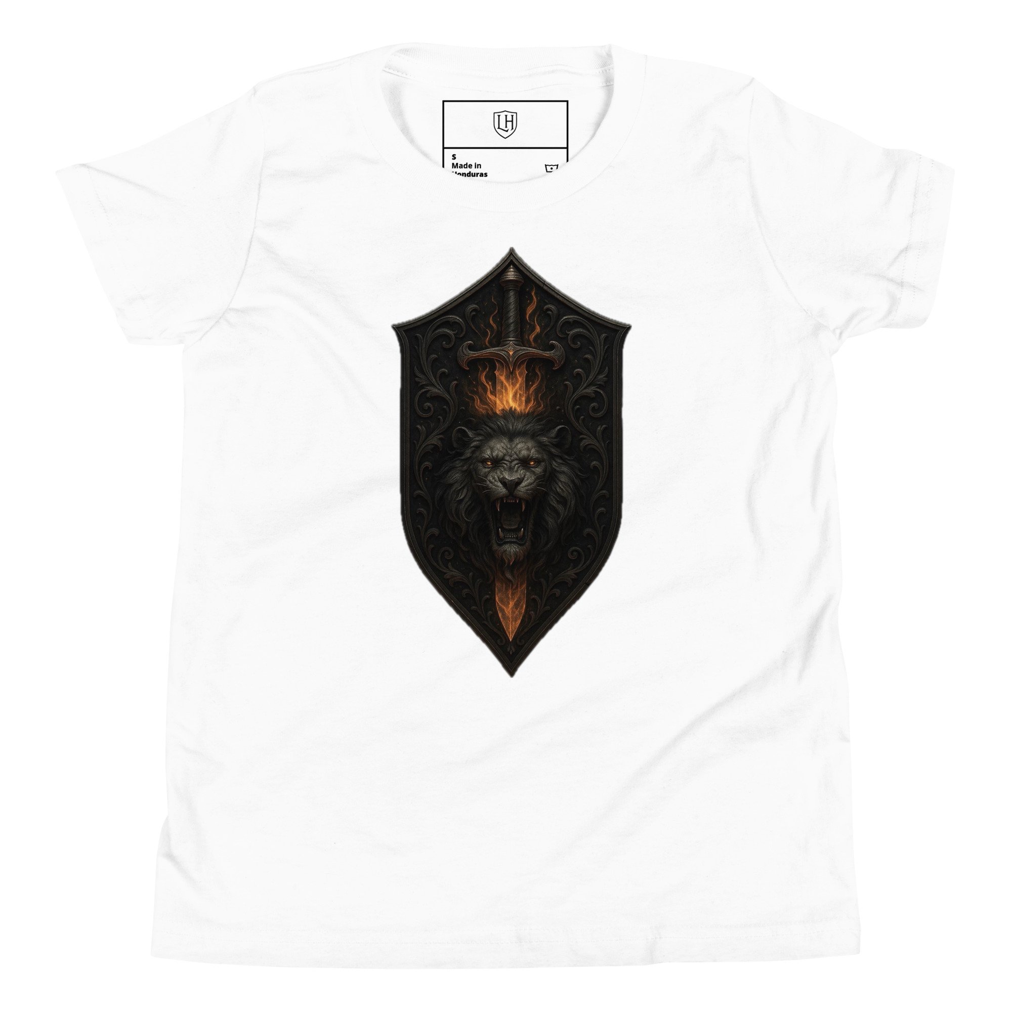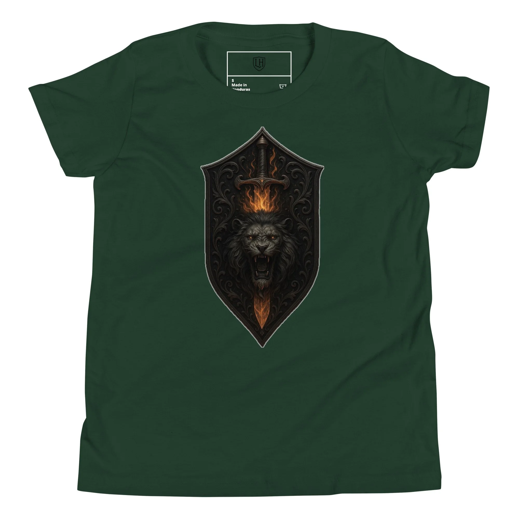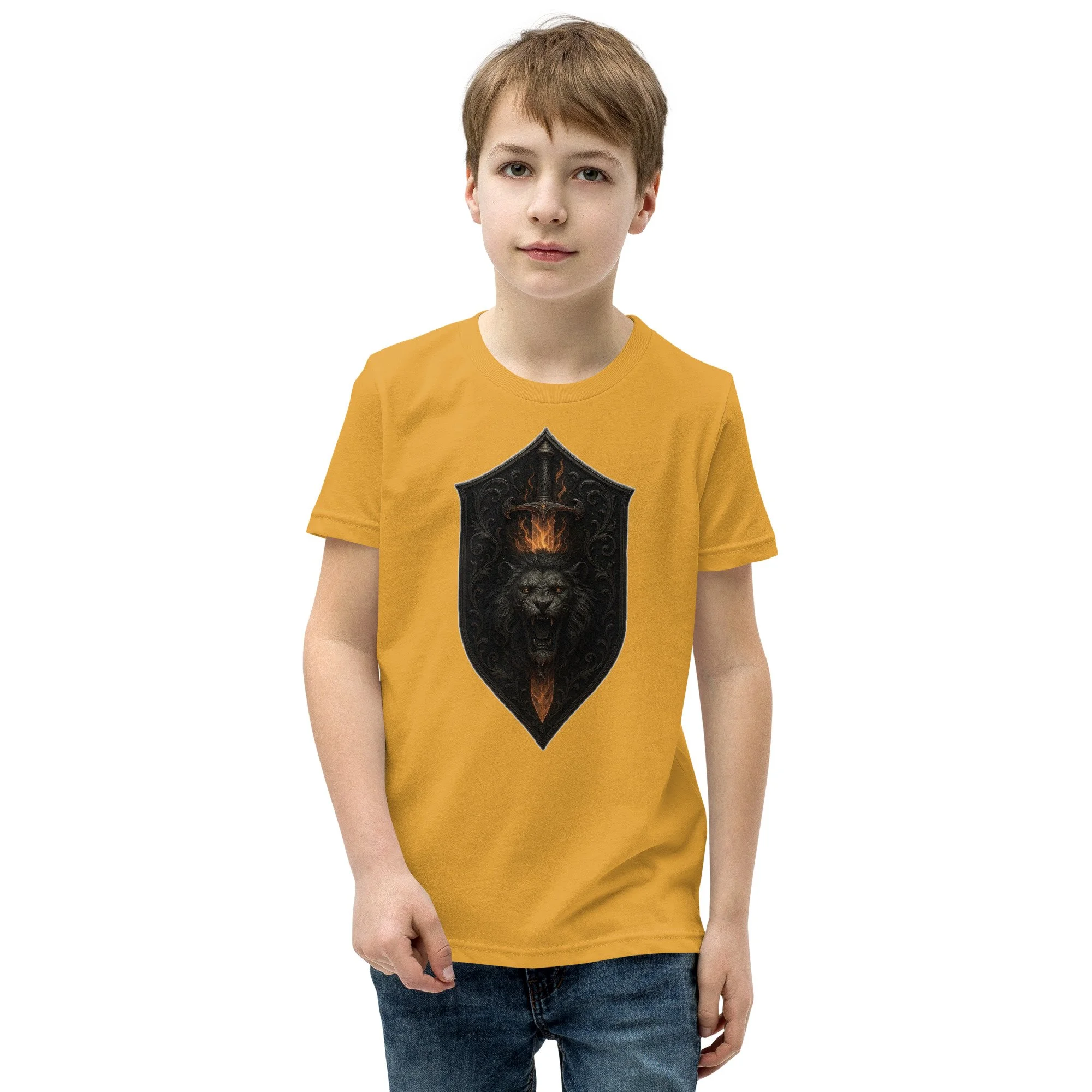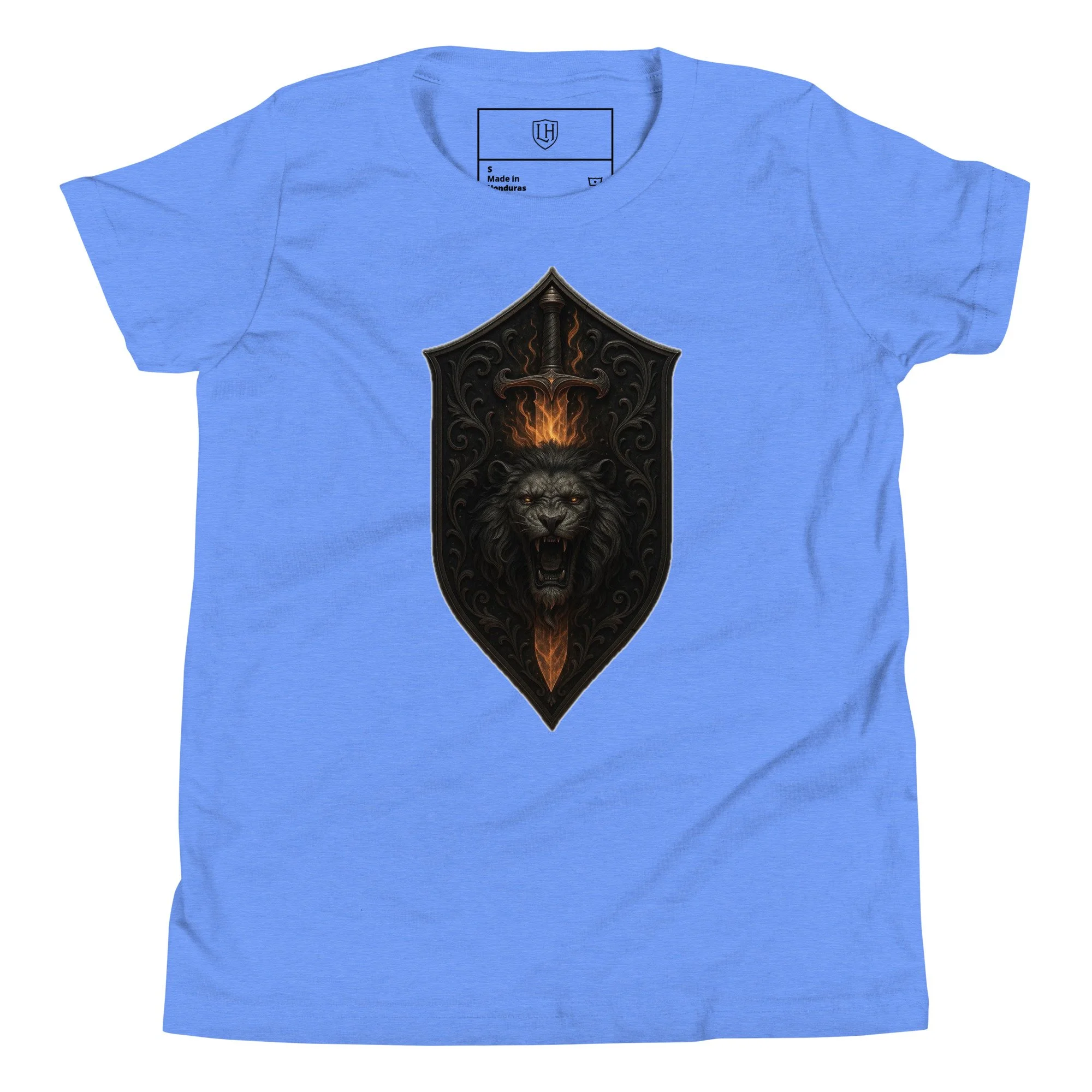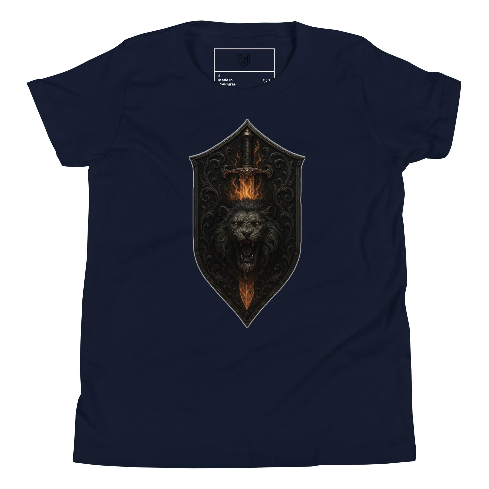 For young hearts with fearless spirit. The Lionheart Youth Tee features a bold heraldic lion crest in a dark fantasy style—perfect for kids who lead with courage, confidence, and imagination. Soft, lightweight, and built for everyday adventure.