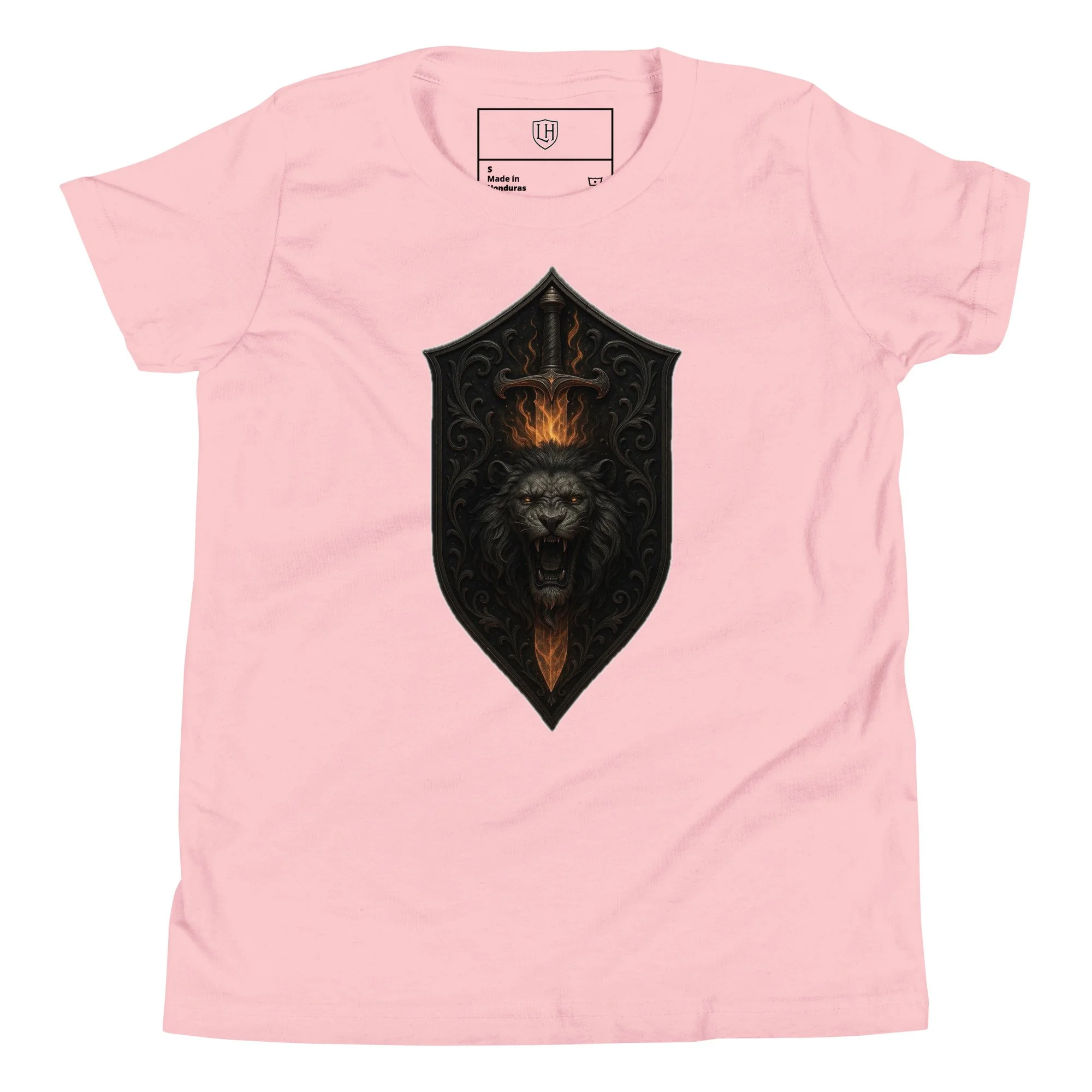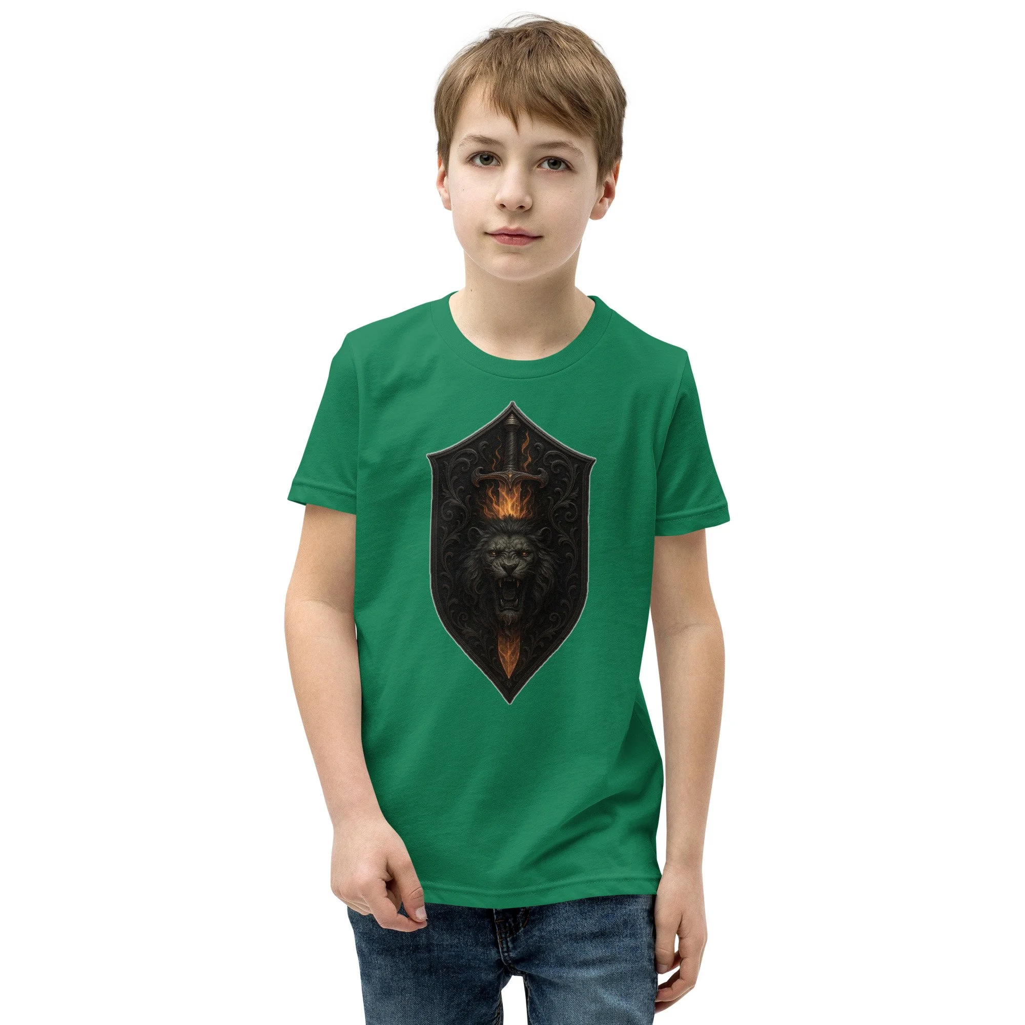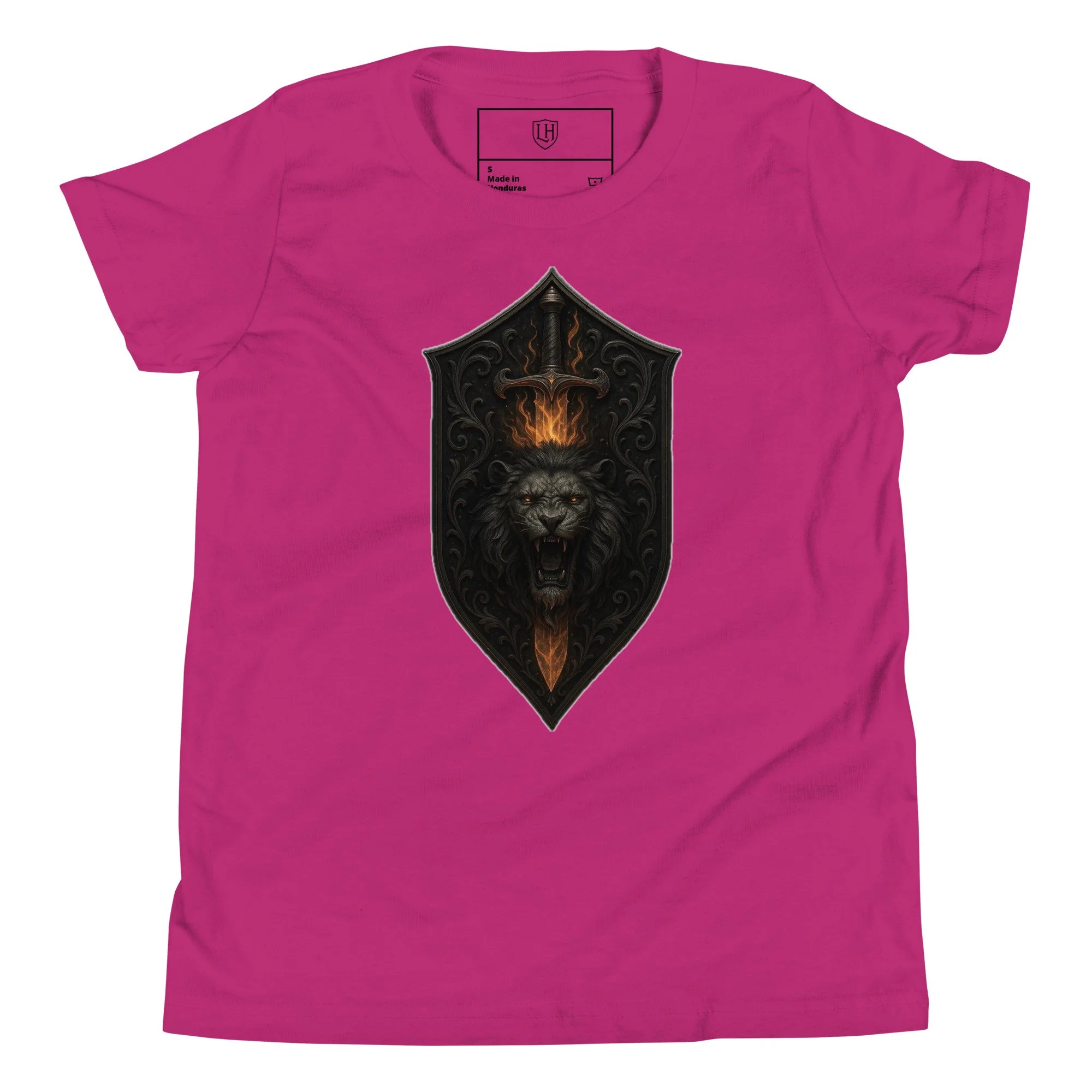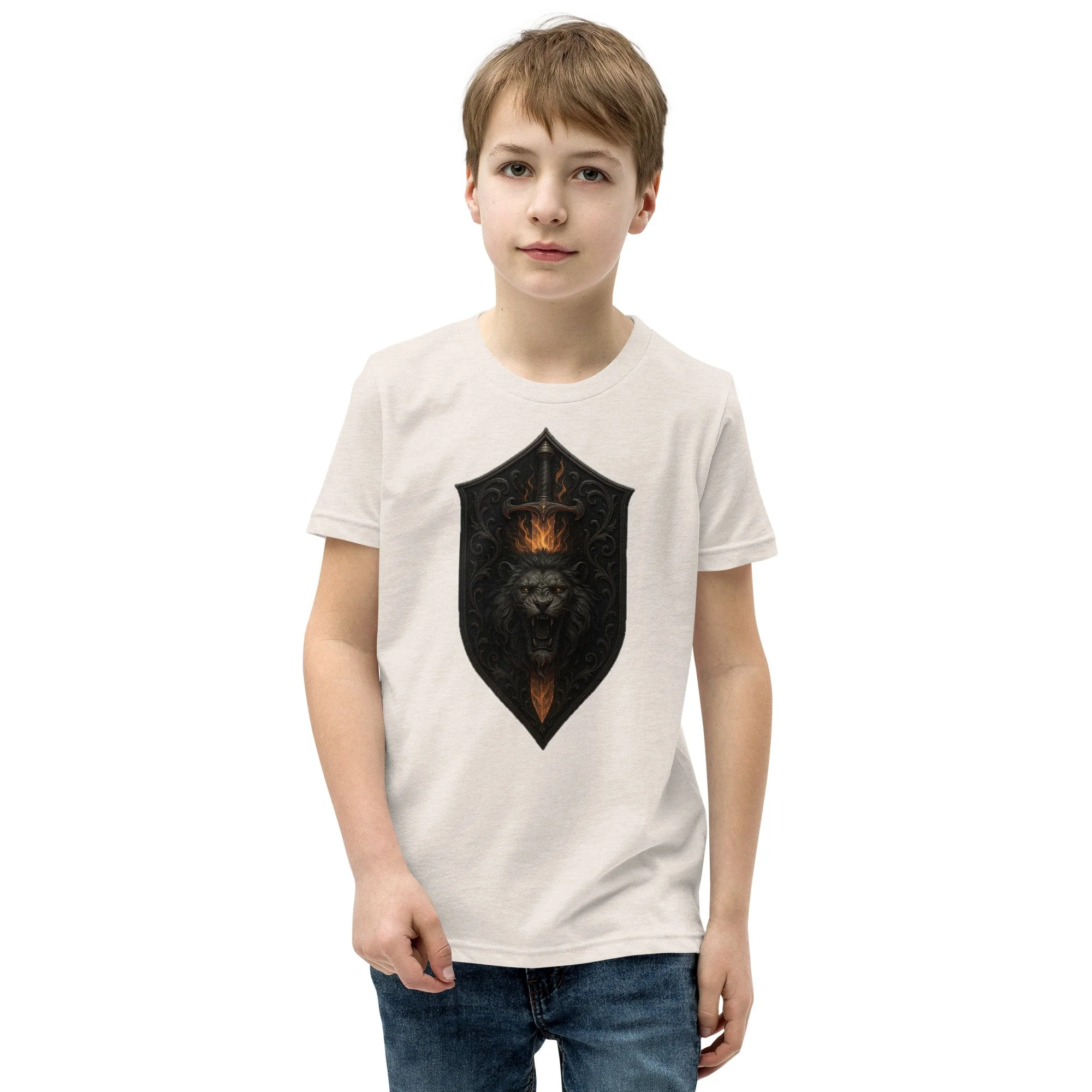 For young hearts with fearless spirit. The Lionheart Youth Tee features a bold heraldic lion crest in a dark fantasy style—perfect for kids who lead with courage, confidence, and imagination. Soft, lightweight, and built for everyday adventure.