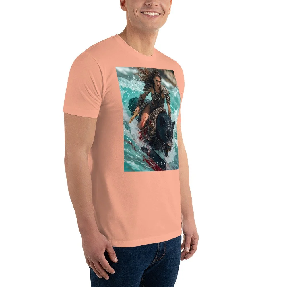 Shop › Short Sleeve T-shirt Short Sleeve T-shirt $34.99 This t-shirt is comfortable, soft, lightweight, and form-fitting. It's an ideal staple piece for any wardrobe! • 100% combed ring-spun cotton • Heather Grey is 90% cotton, 10% polyester • Fabric weight: 4.3 oz/yd² (145.8 g/m²) • 32 singles • Pre-shrunk • Blank product sourced from Honduras, Nicaragua, Mexico, or Cambodia This t-shirt is comfortable, soft, lightweight, and form-fitting. It's an ideal staple piece for any wardrobe! • 100% combed ring-spun cotton • Heather Grey is 90% cotton, 10% polyester • Fabric weight: 4.3 oz/yd² (145.8 g/m²) • 32 singles • Pre-shrunk • Blank product sourced from Honduras, Nicaragua, Mexico, or Cambodia Color: Select Color Black Midnight Navy Red Royal Blue Heather Grey Desert Pink Light Blue White Size: Select Size XS S M L XL 2XL 3XL Purchase Added!