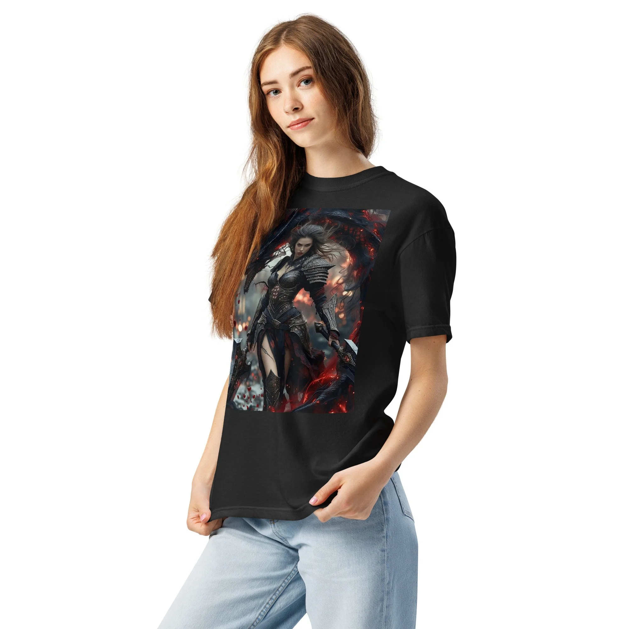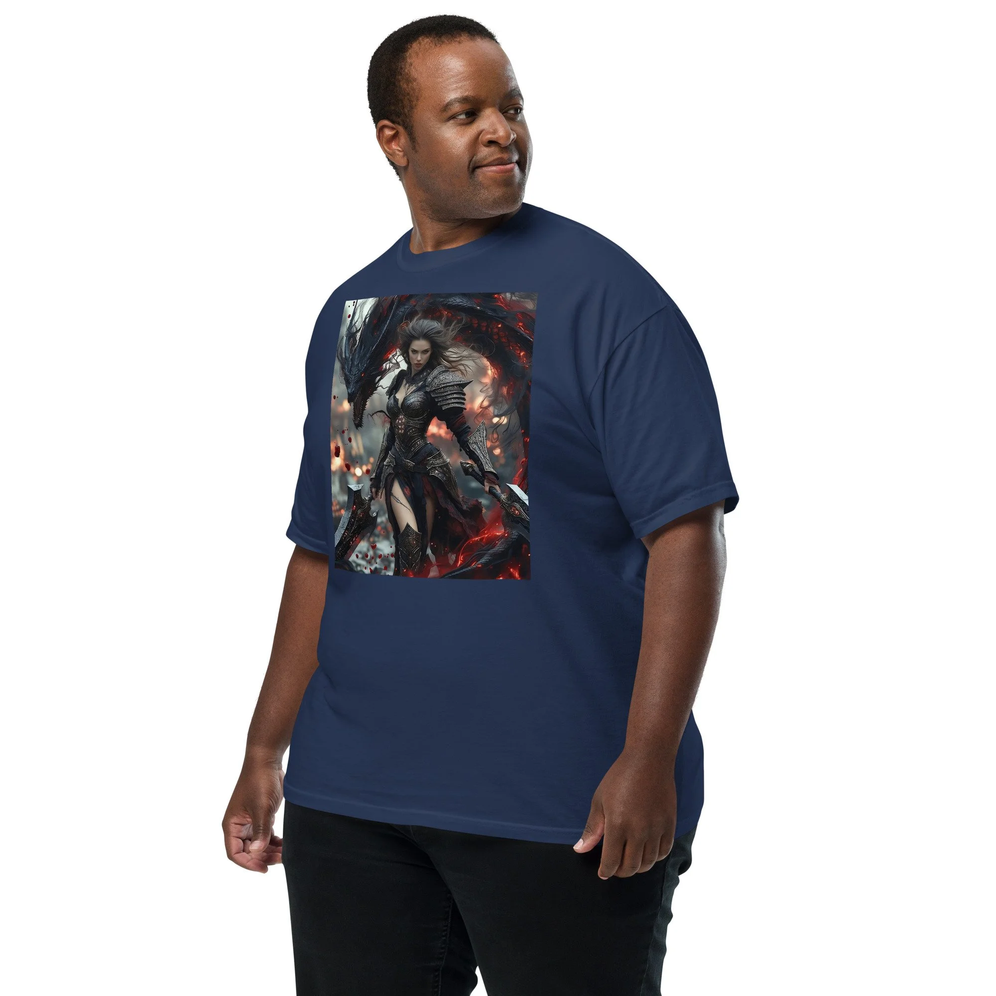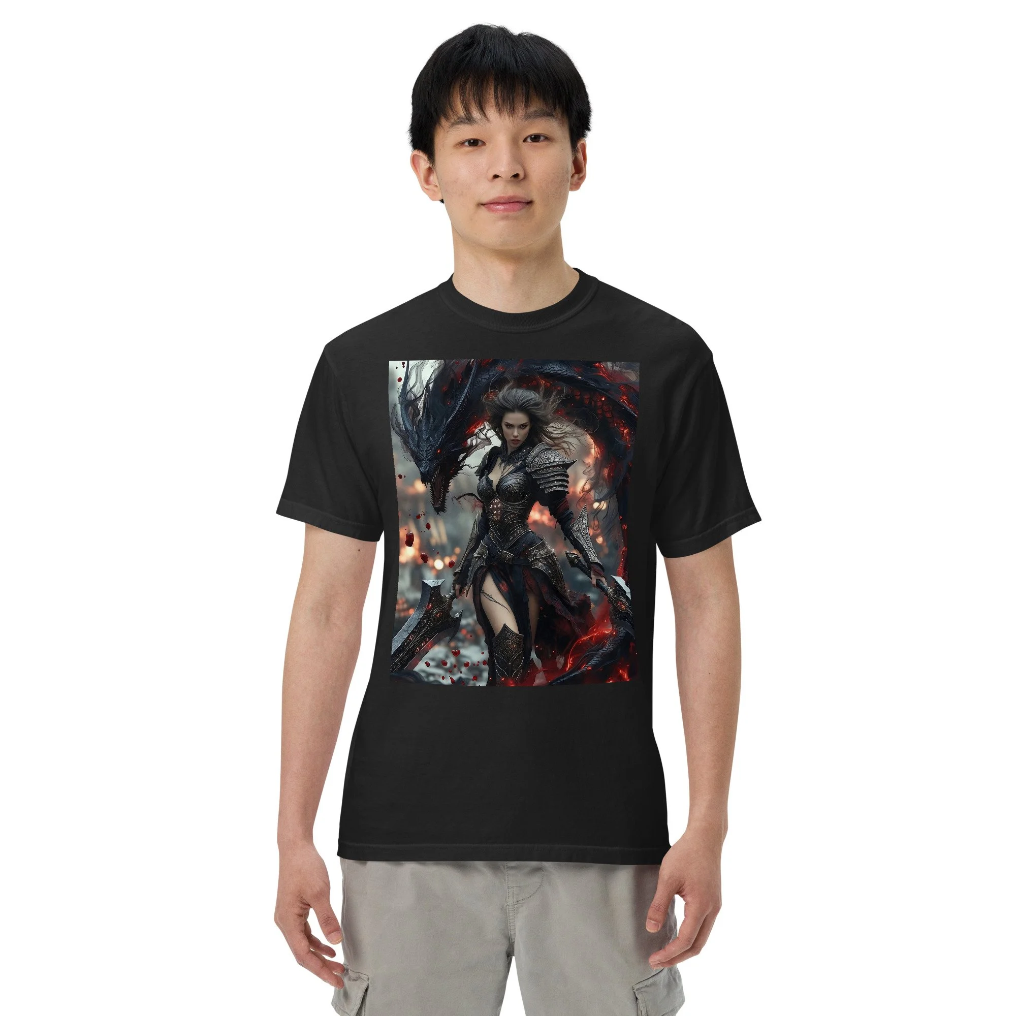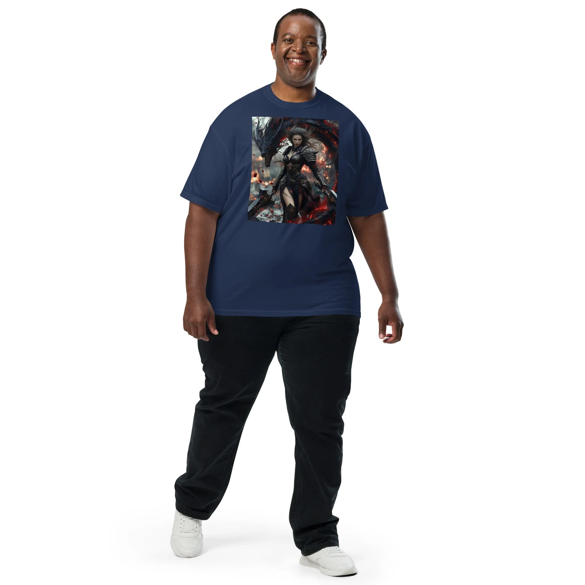 Printed in DTF Flex on a premium heavyweight unisex t-shirt, the design delivers deep blacks, controlled highlights, and sharp detail that holds its strength even in darker tonal ranges. The substantial feel of the garment mirrors the presence of the imagery itself — solid, grounded, and built to last.