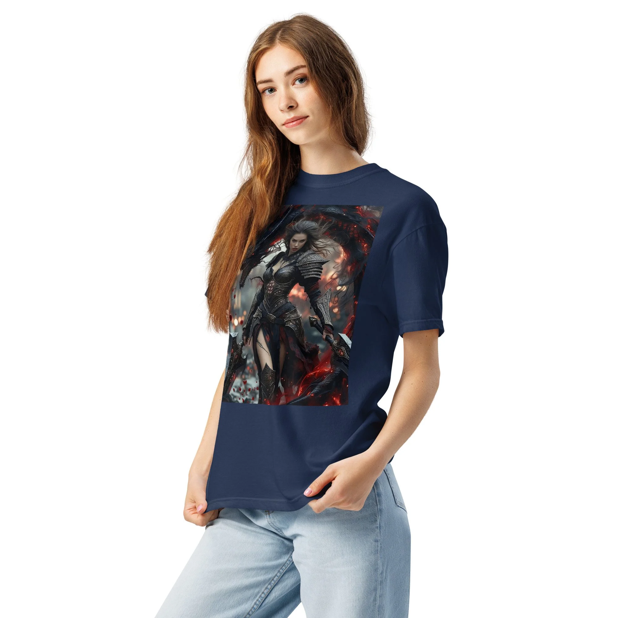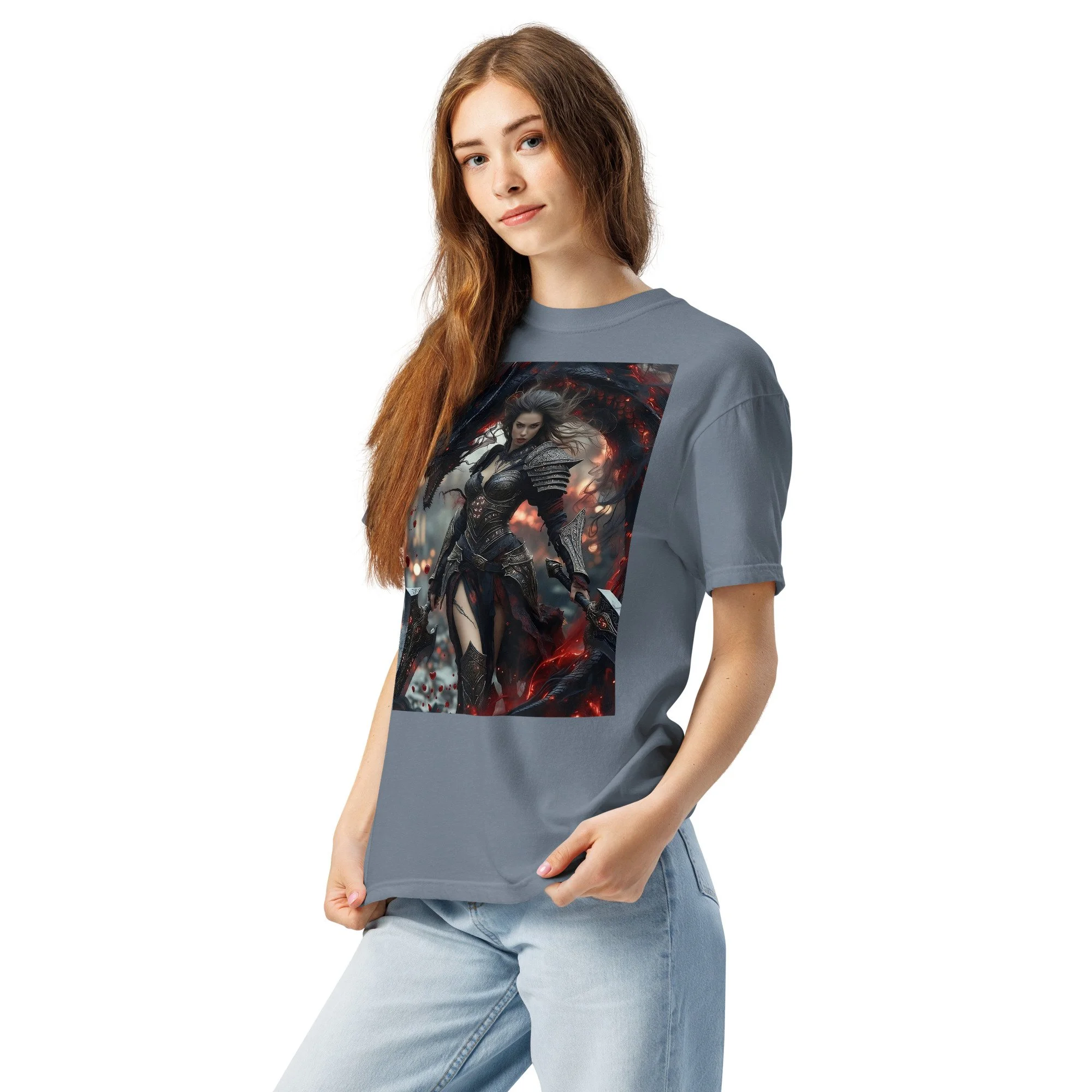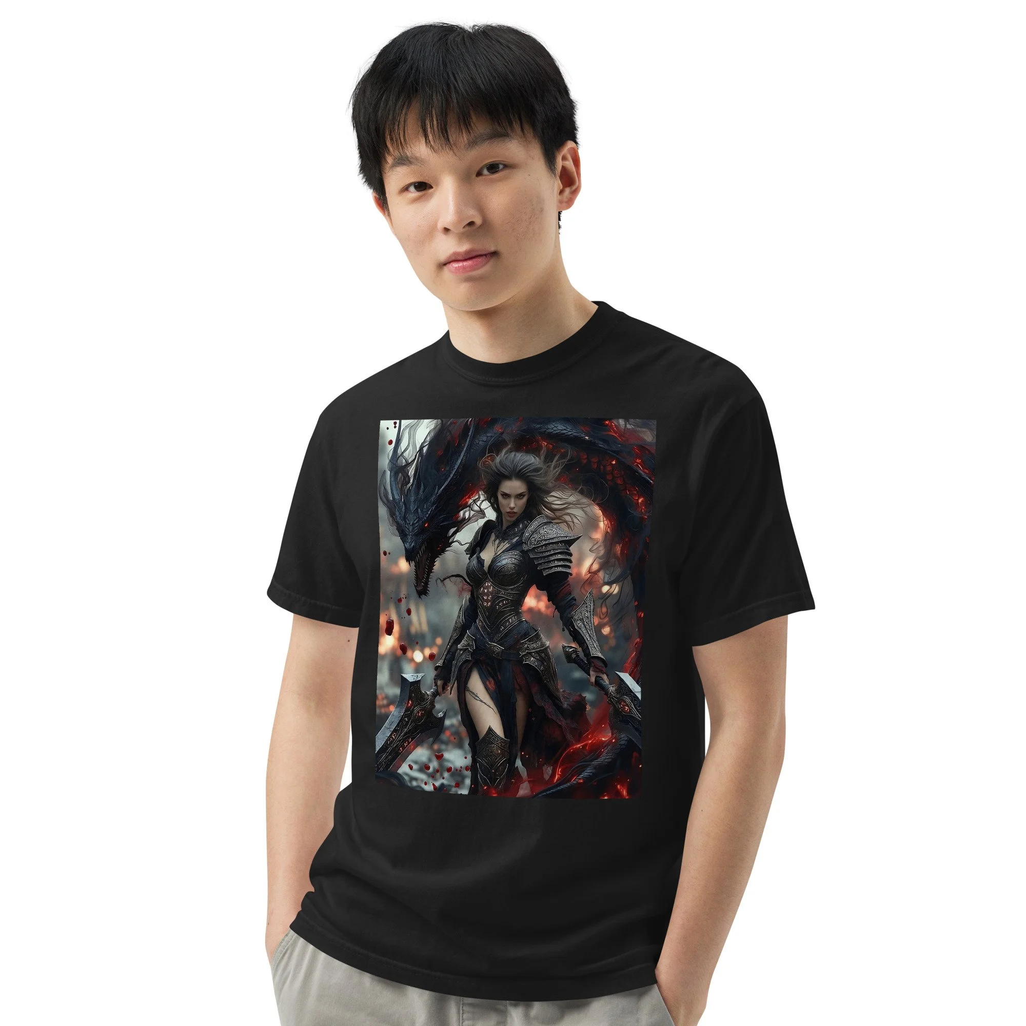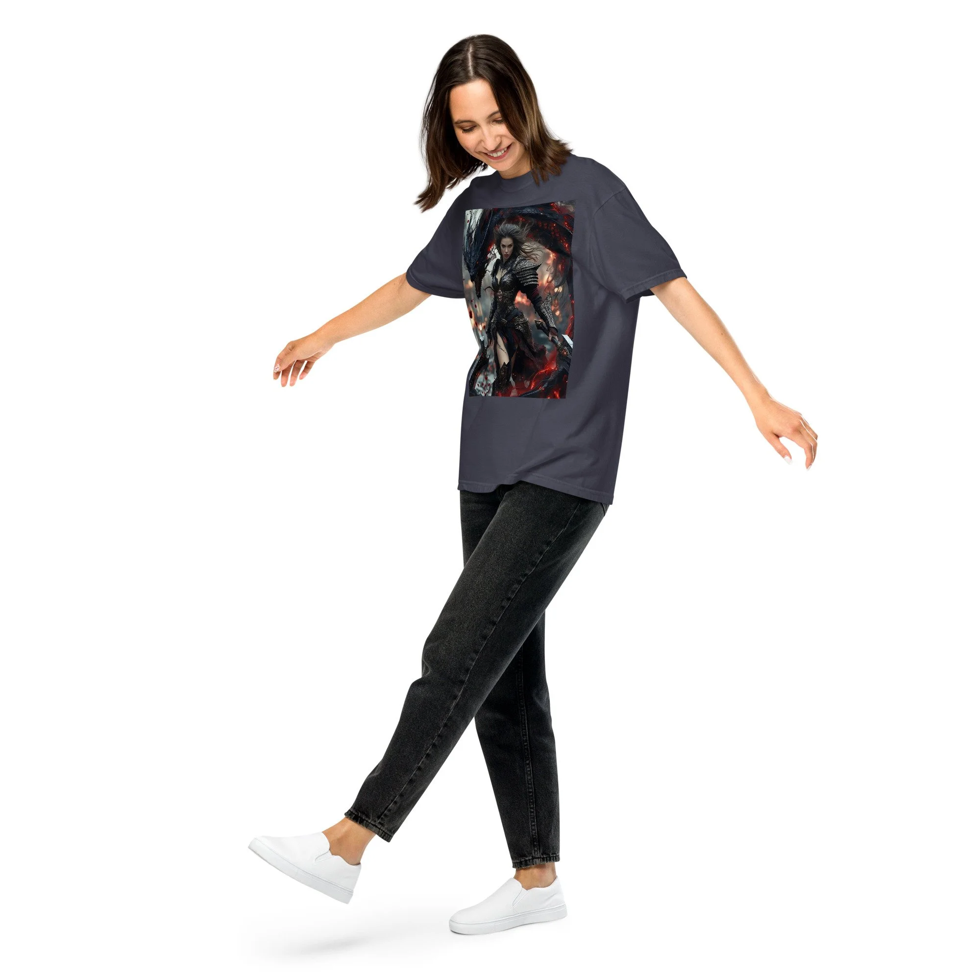Printed in DTF Flex on a premium heavyweight unisex t-shirt, the design delivers deep blacks, controlled highlights, and sharp detail that holds its strength even in darker tonal ranges. The substantial feel of the garment mirrors the presence of the imagery itself — solid, grounded, and built to last.