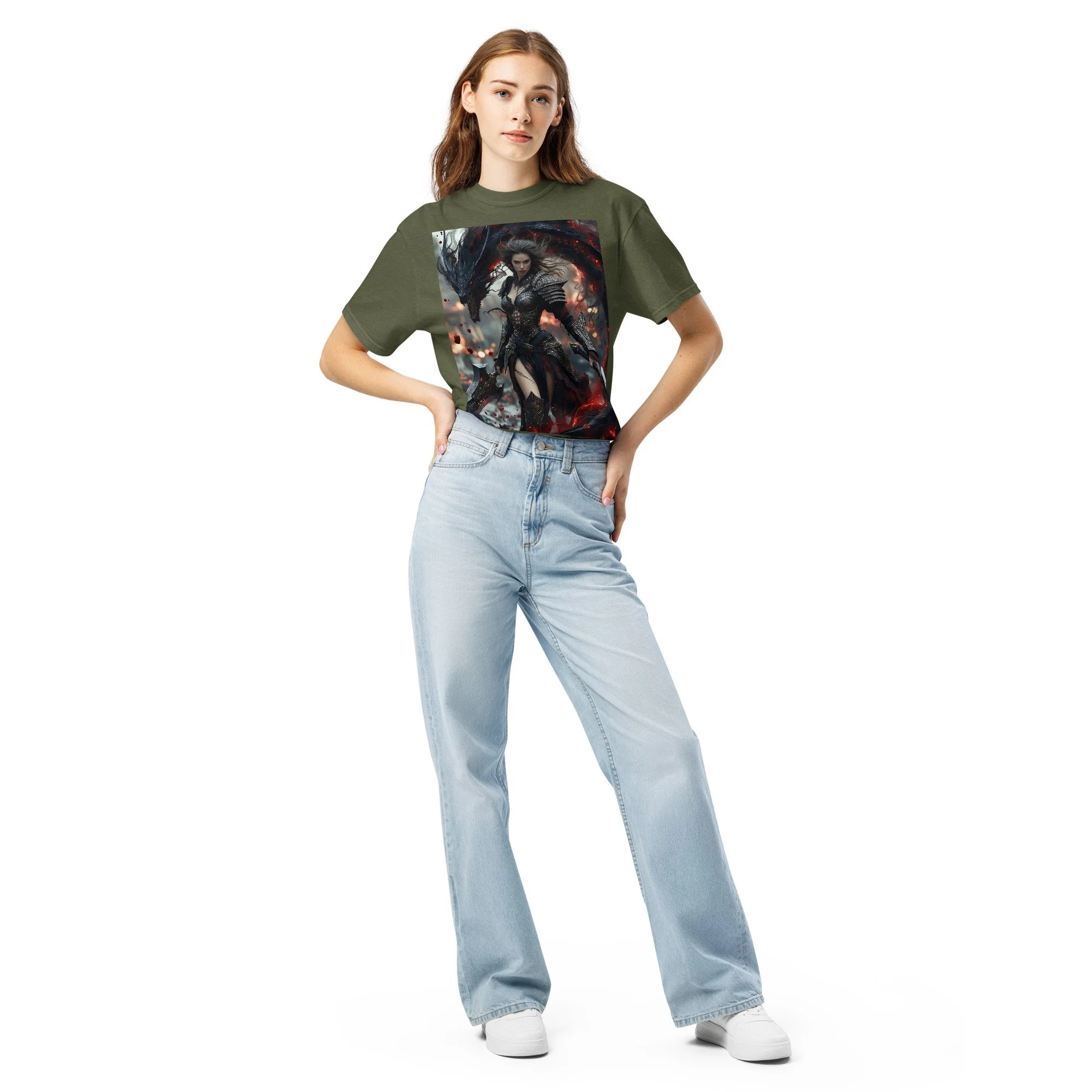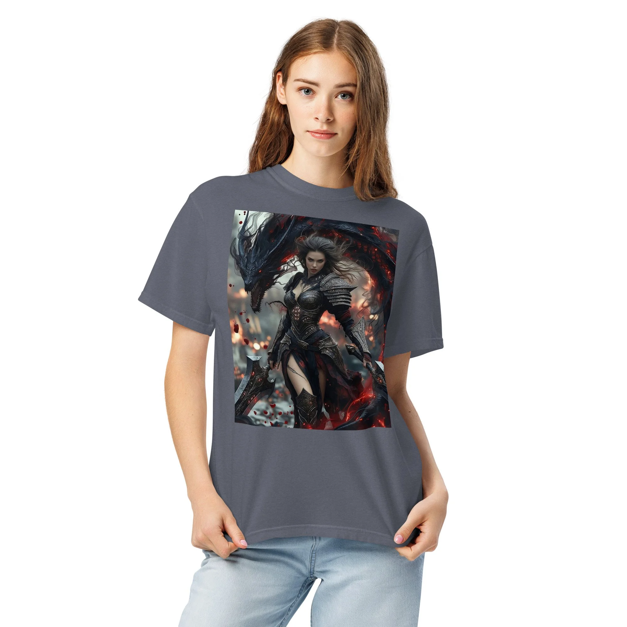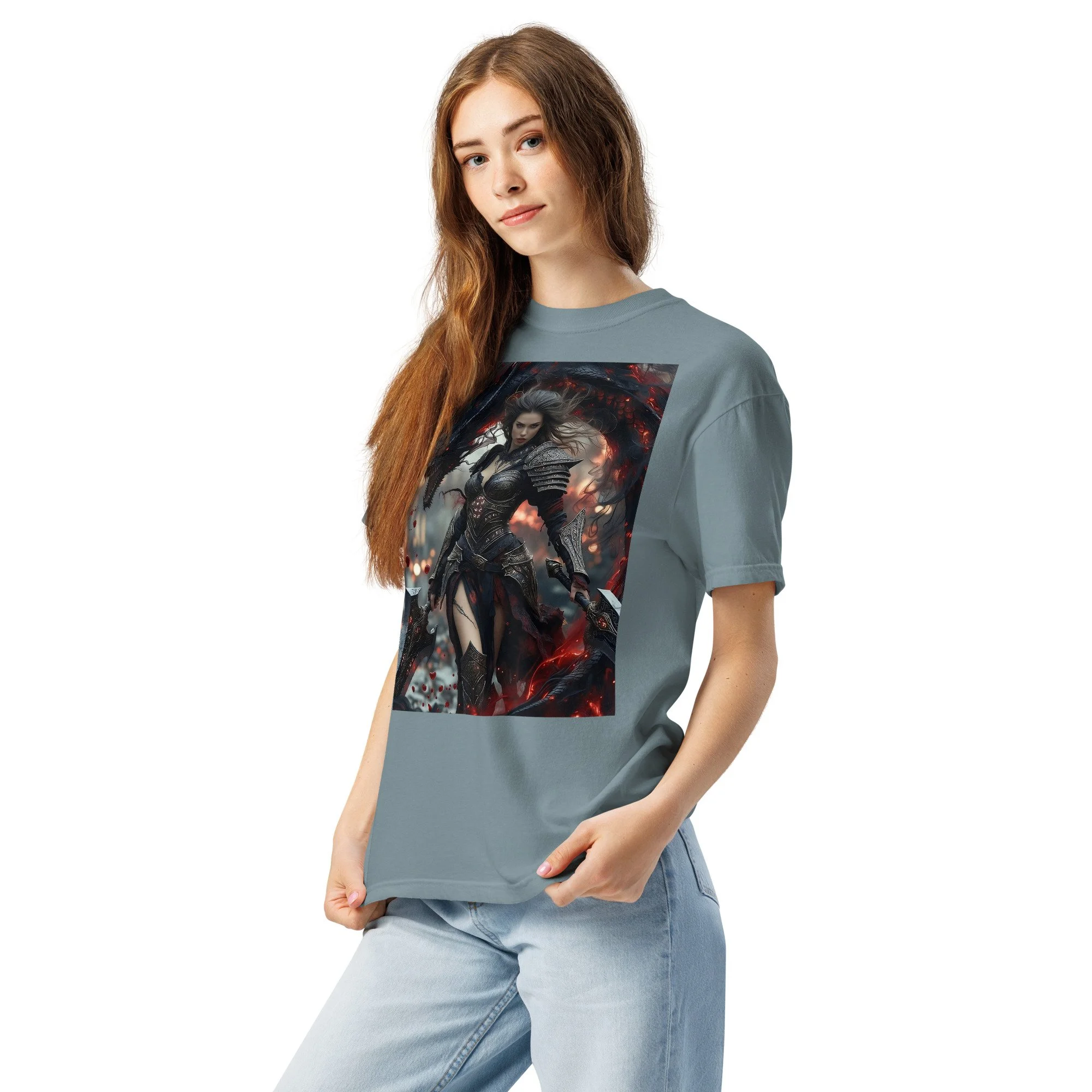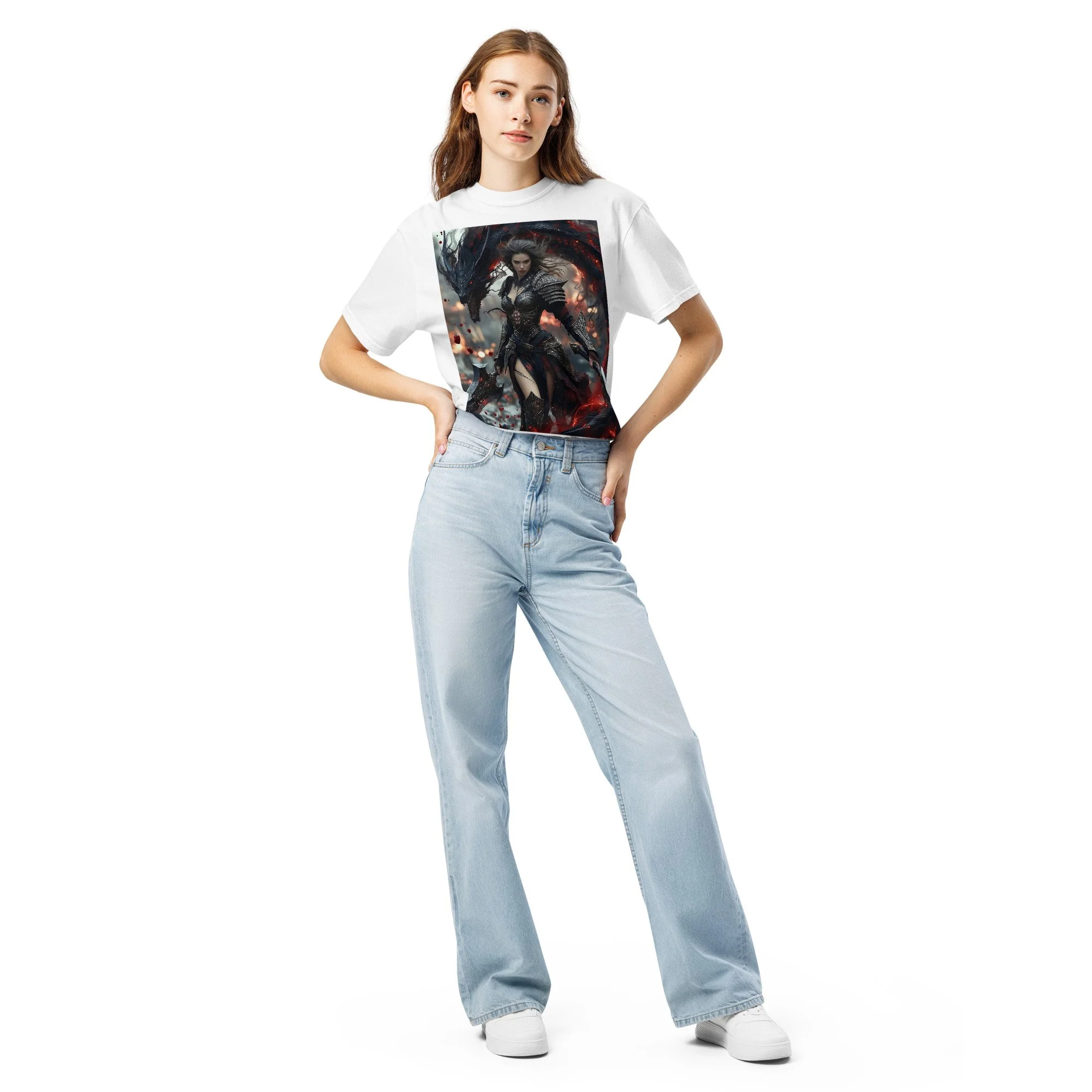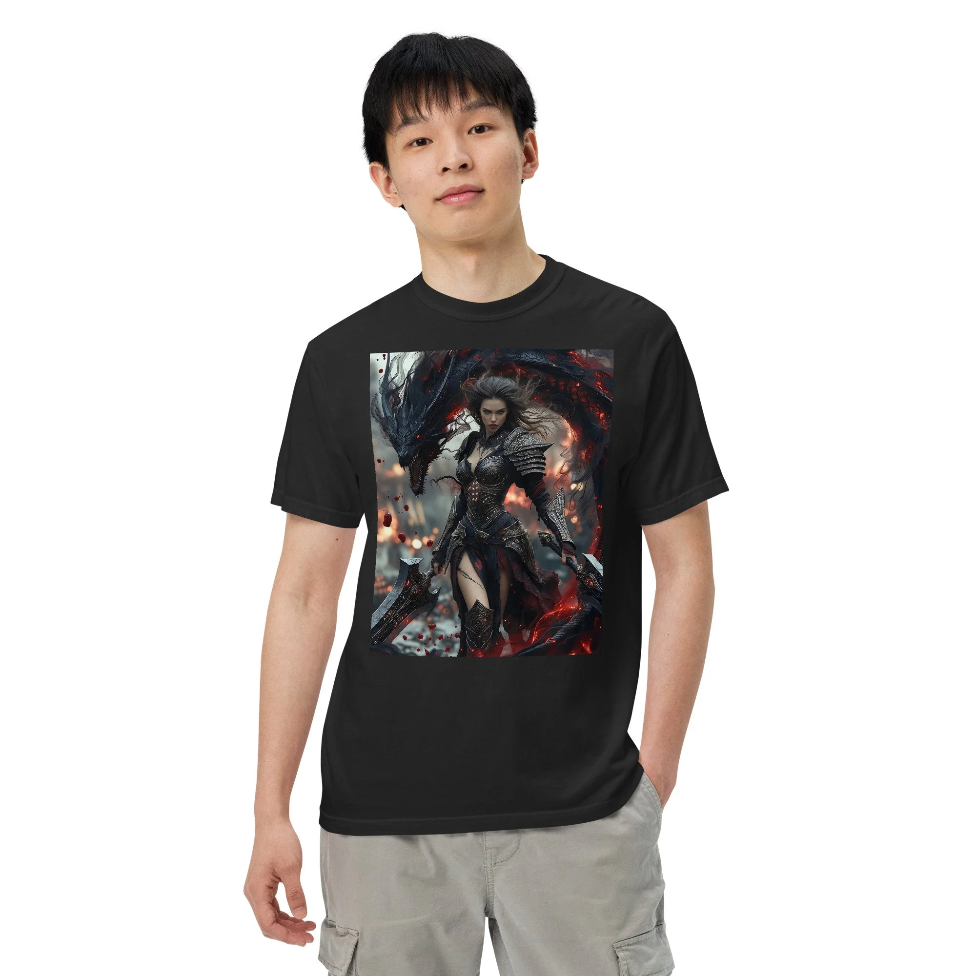 Printed in DTF Flex on a premium heavyweight unisex t-shirt, the design delivers deep blacks, controlled highlights, and sharp detail that holds its strength even in darker tonal ranges. The substantial feel of the garment mirrors the presence of the imagery itself — solid, grounded, and built to last.
