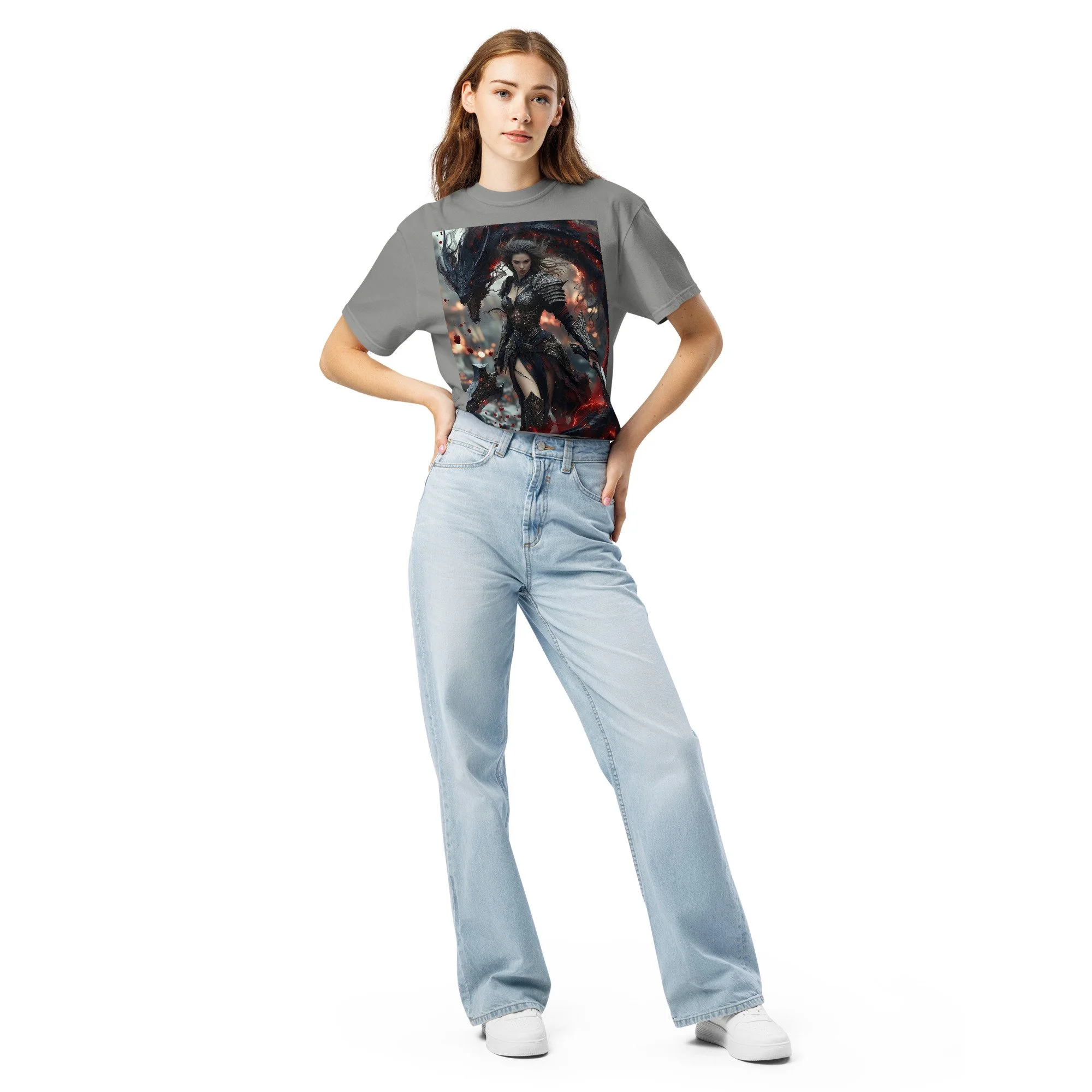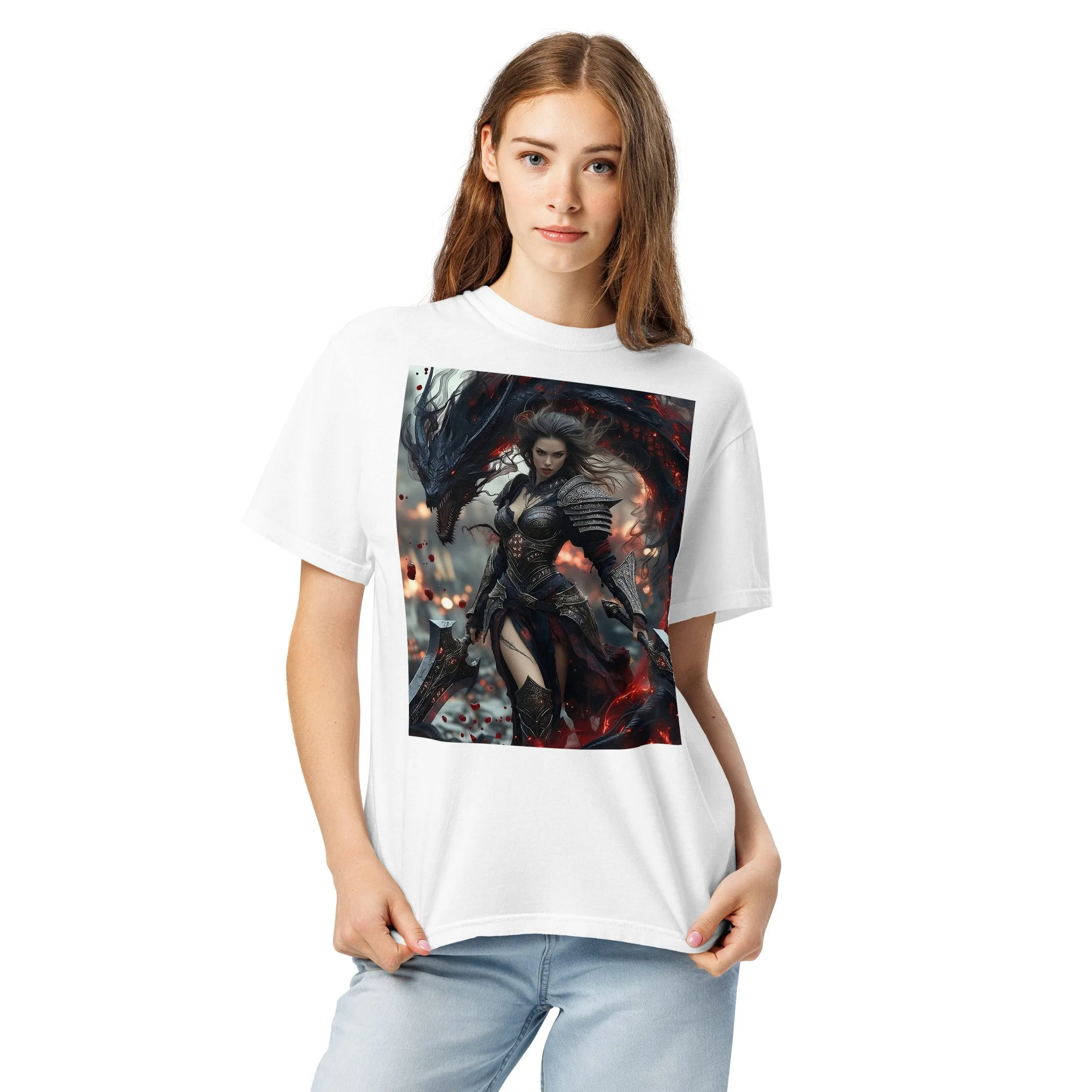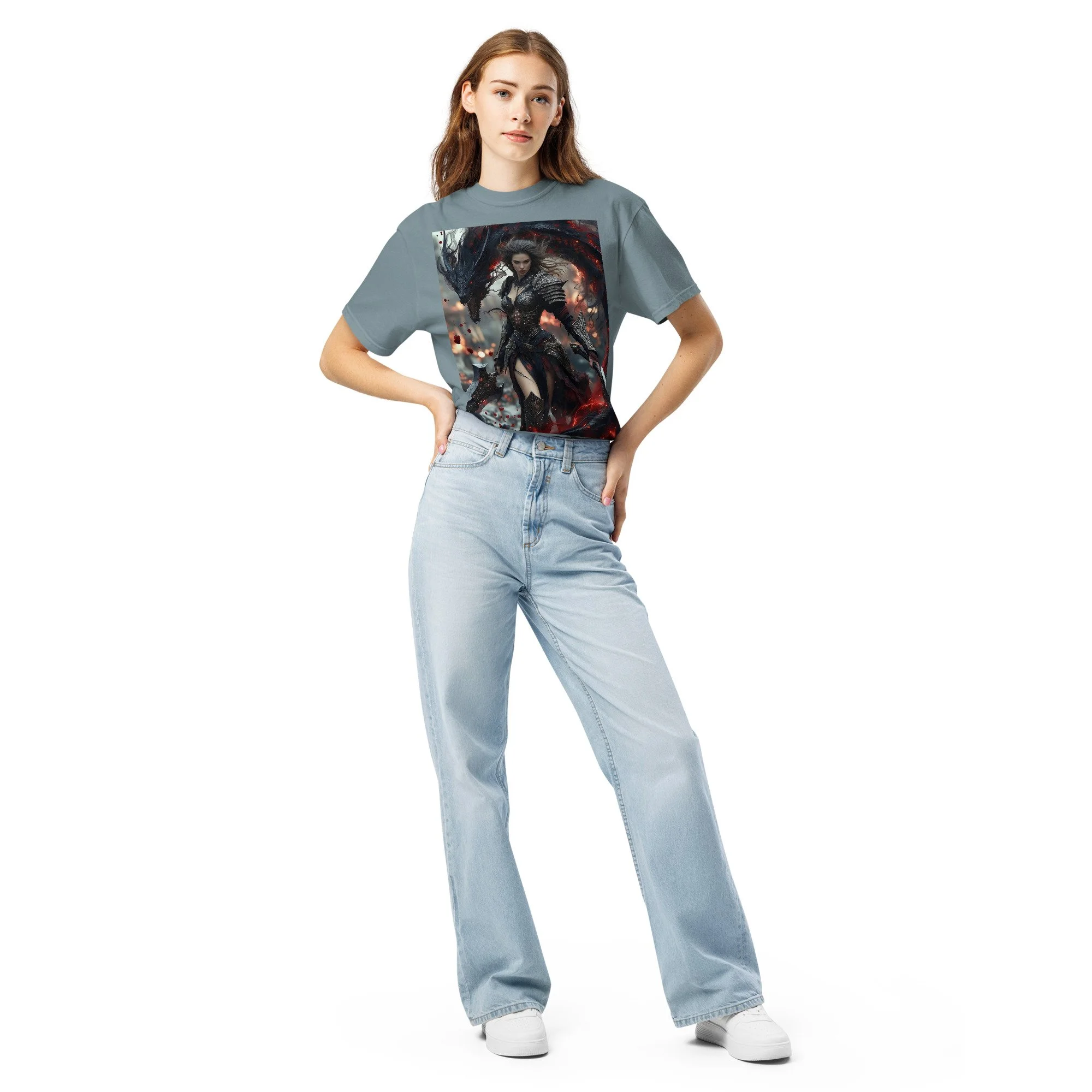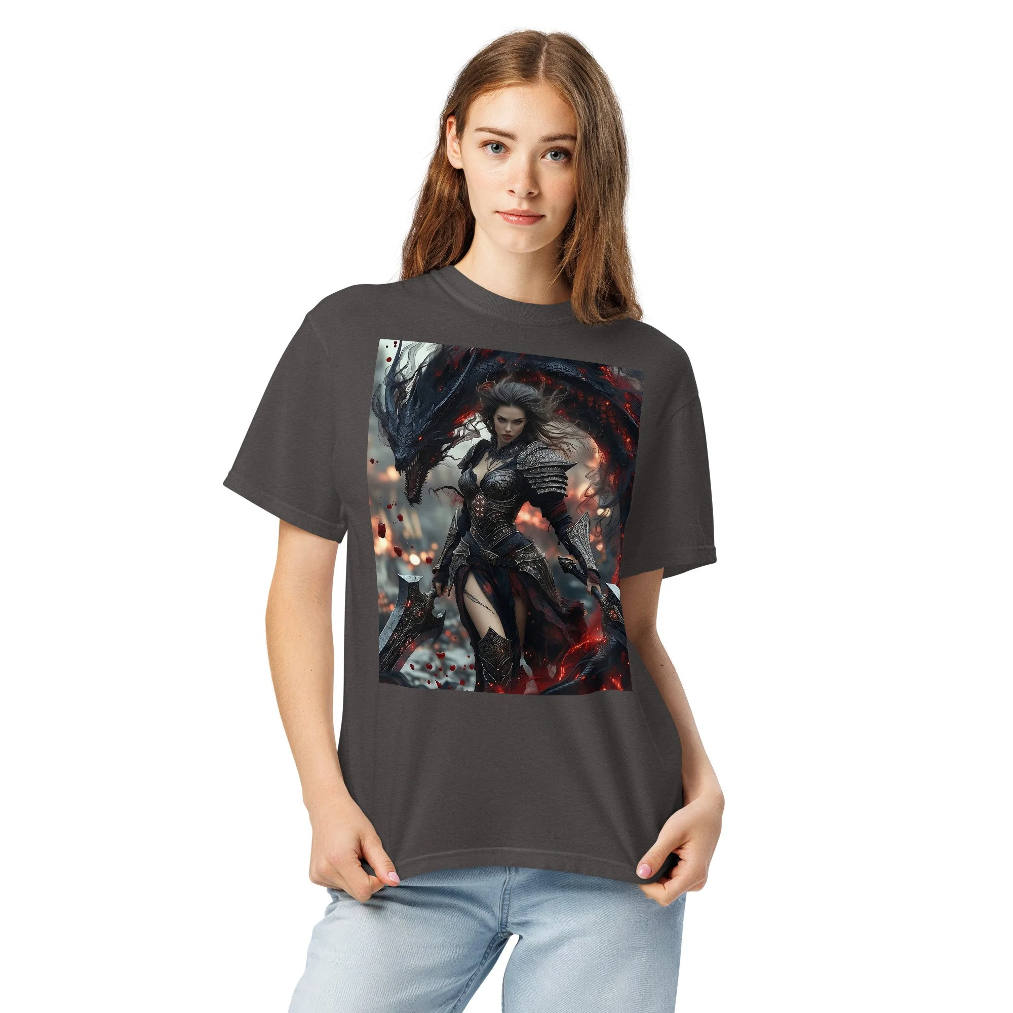 Printed in DTF Flex on a premium heavyweight unisex t-shirt, the design delivers deep blacks, controlled highlights, and sharp detail that holds its strength even in darker tonal ranges. The substantial feel of the garment mirrors the presence of the imagery itself — solid, grounded, and built to last.